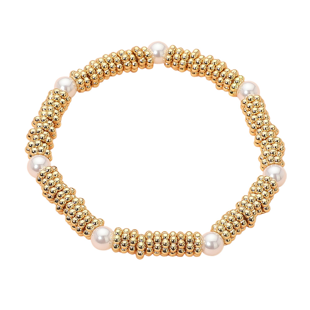 Pearl Accent Textured Metal Beaded Stretch Bracelet