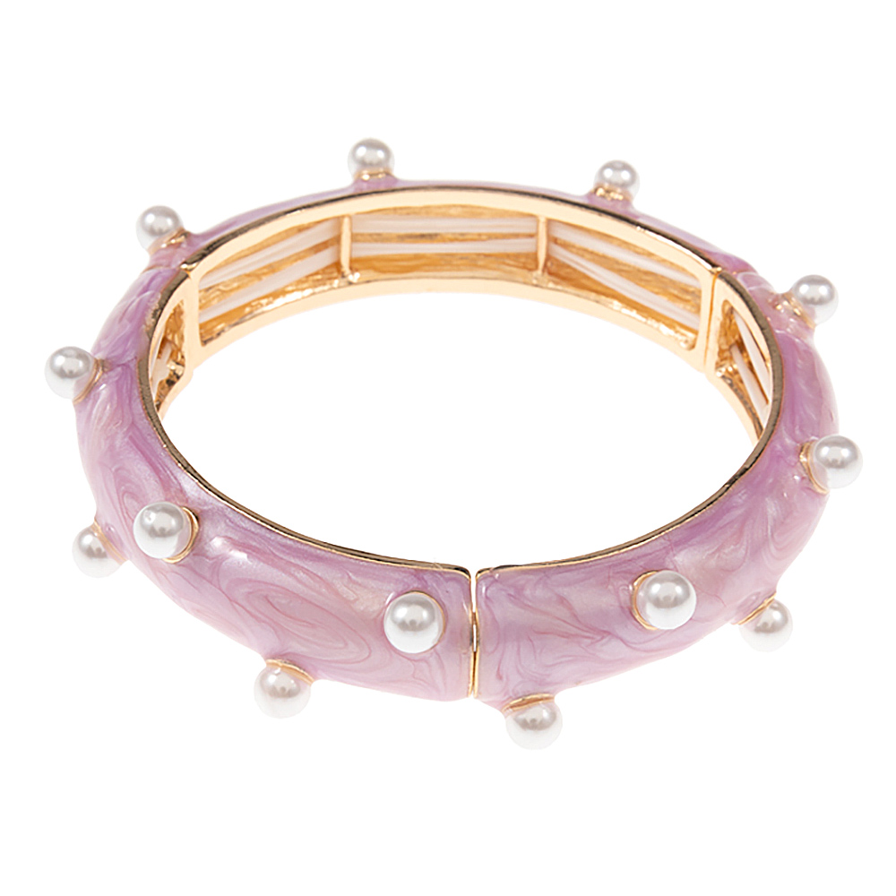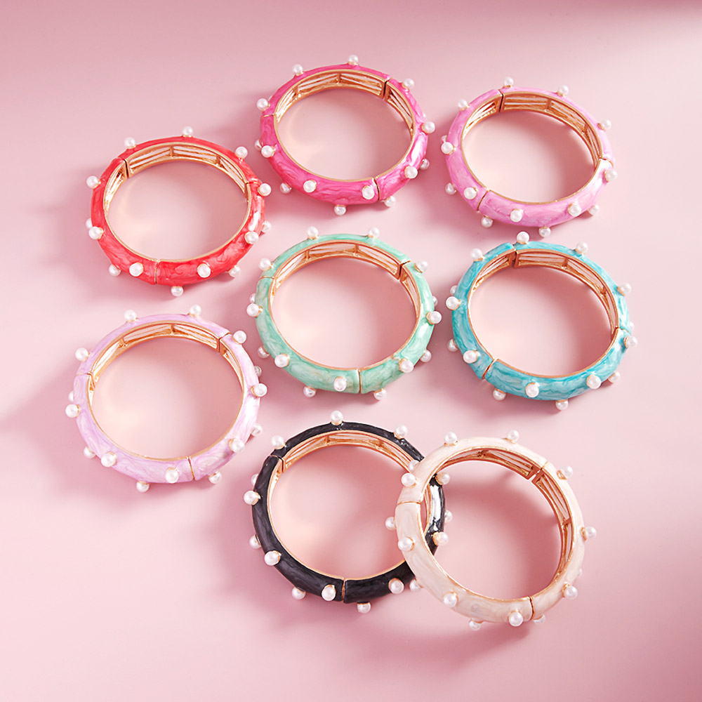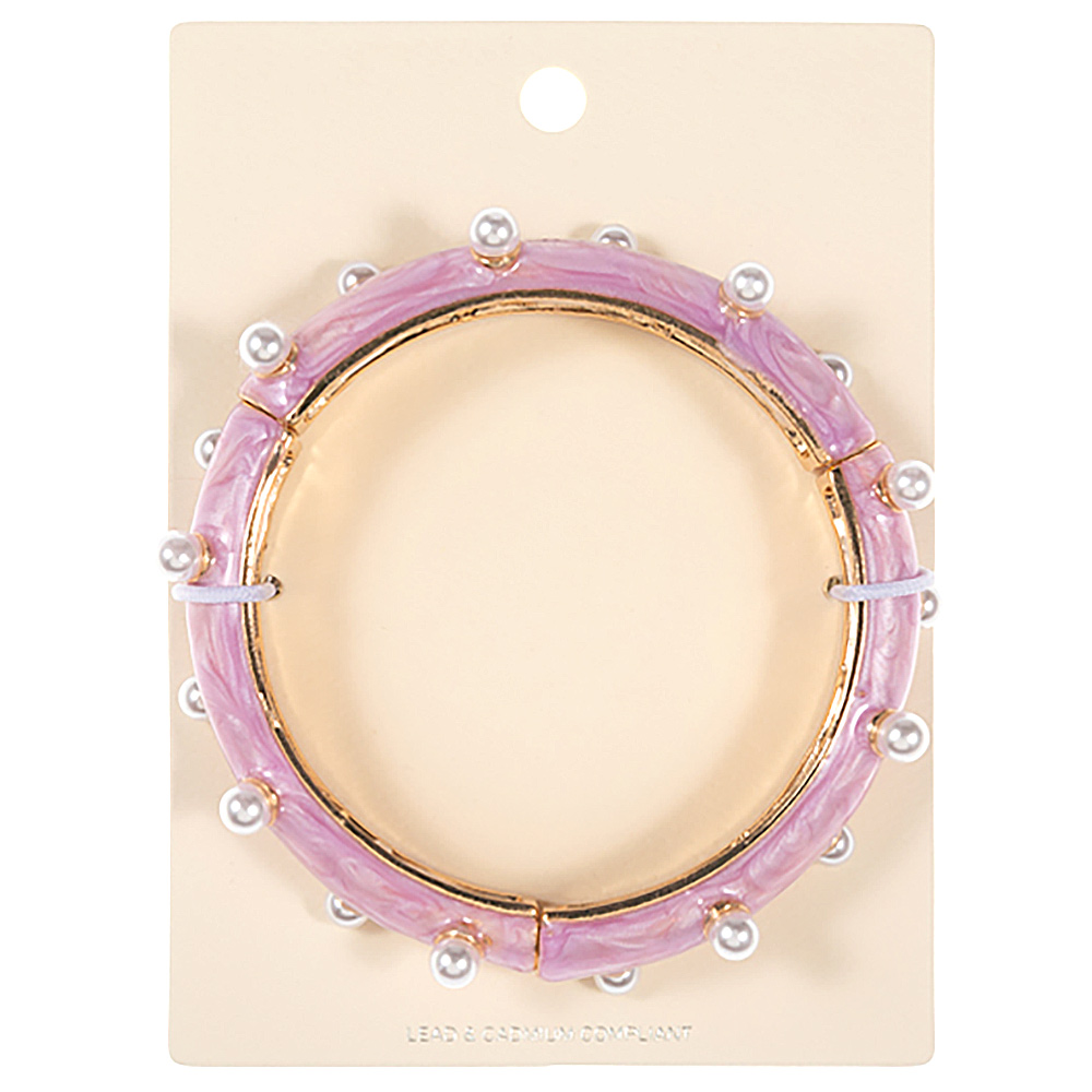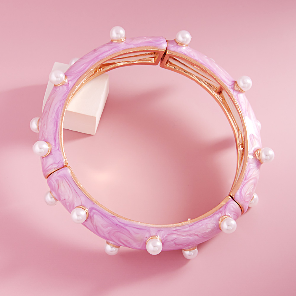Pearl Embellished Marbled Enamel Stretch Bangle Bracelet