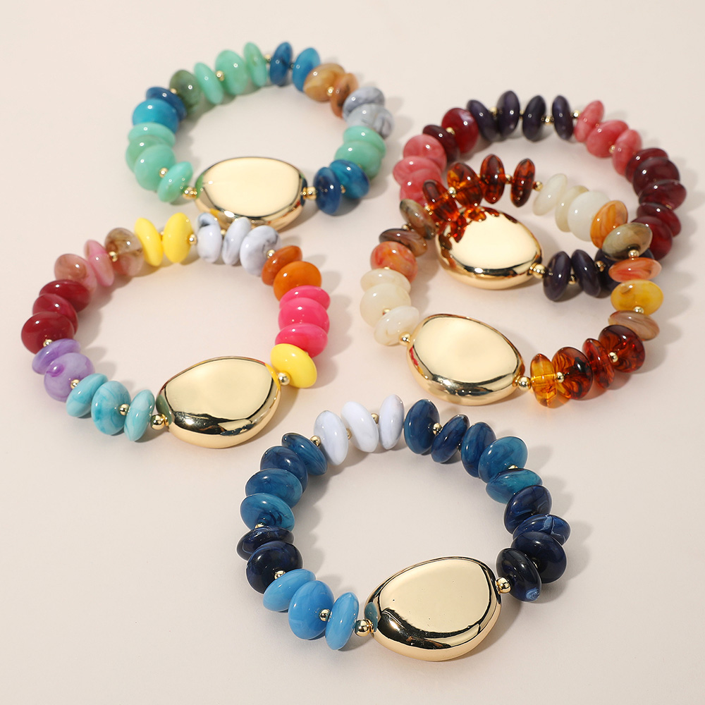 Polished Metal Accent Resin Pebble Beaded Stretch Bracelet Polished Metal Accent Resin Pebble Beaded Stretch Bracelet Polished Metal Accent Resin Pebble Beaded Stretch Bracelet