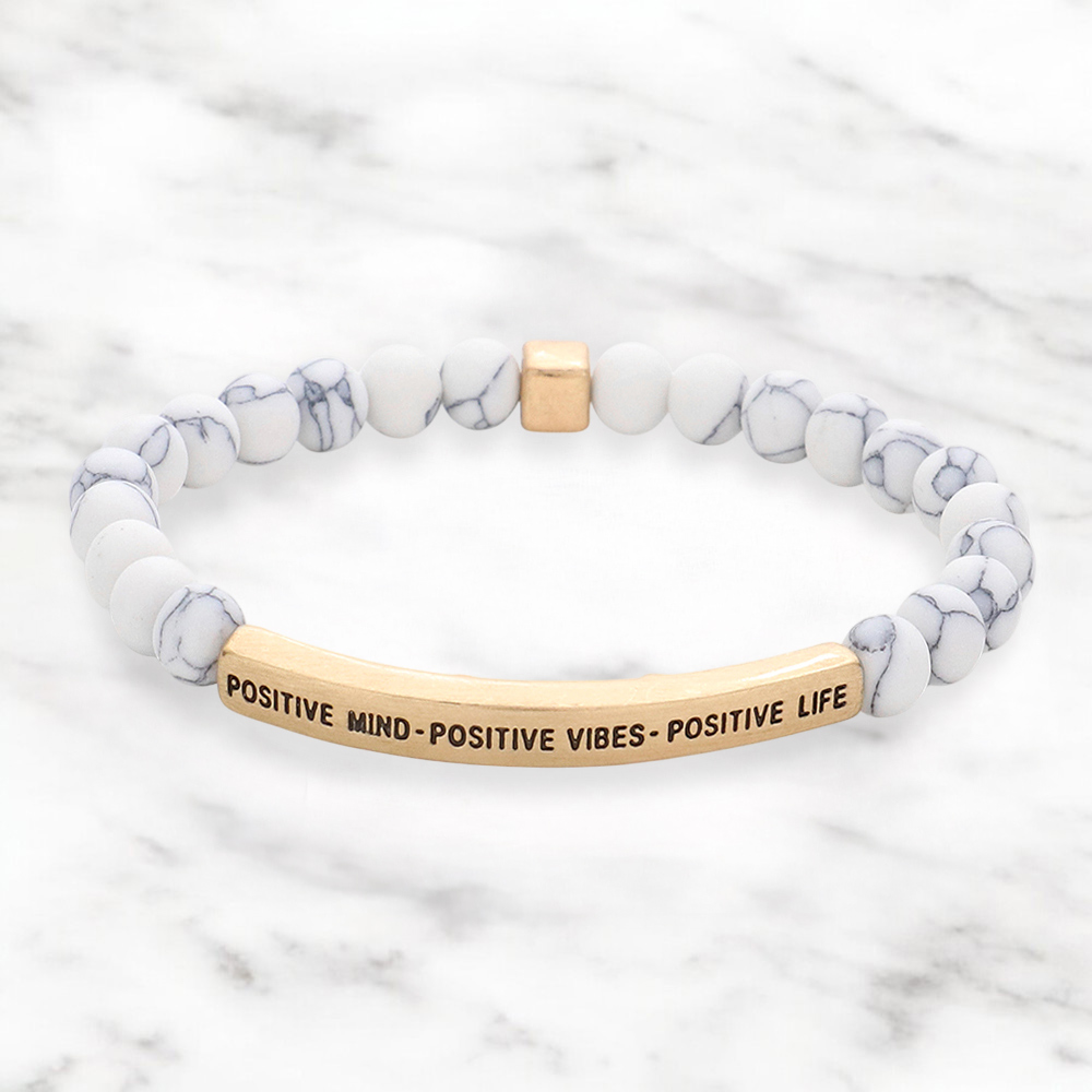 Positive Mind - Positive Vibes - Positive Live Message Natural Stone Stretch Bracelet