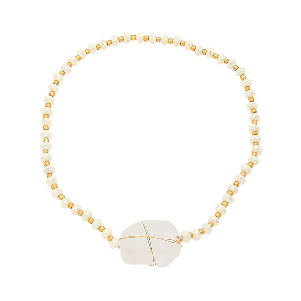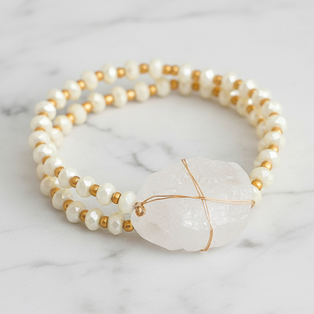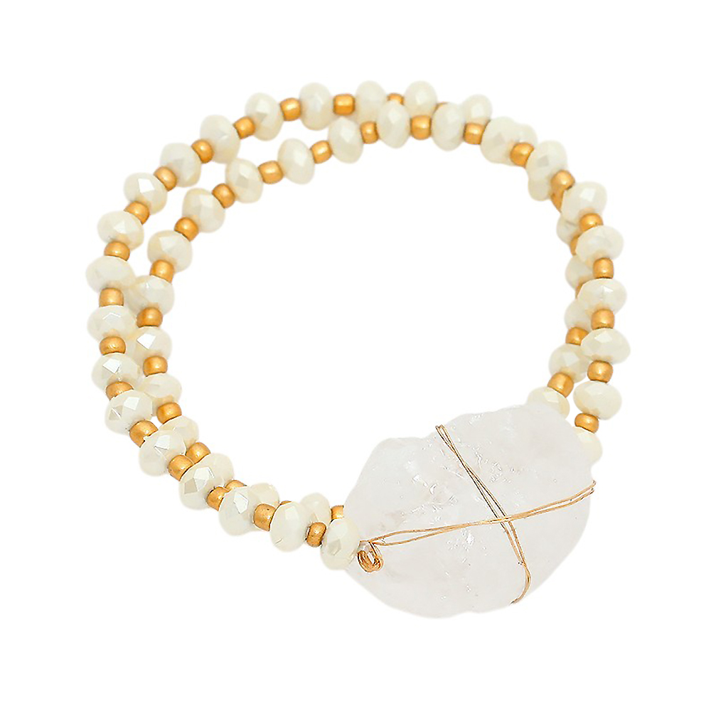 Raw quartz accented bead strand wrap stretch bracelet