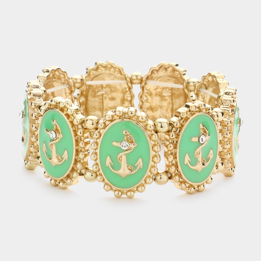 Crystal Anchor Charm Layered Pull Tie Bracelet