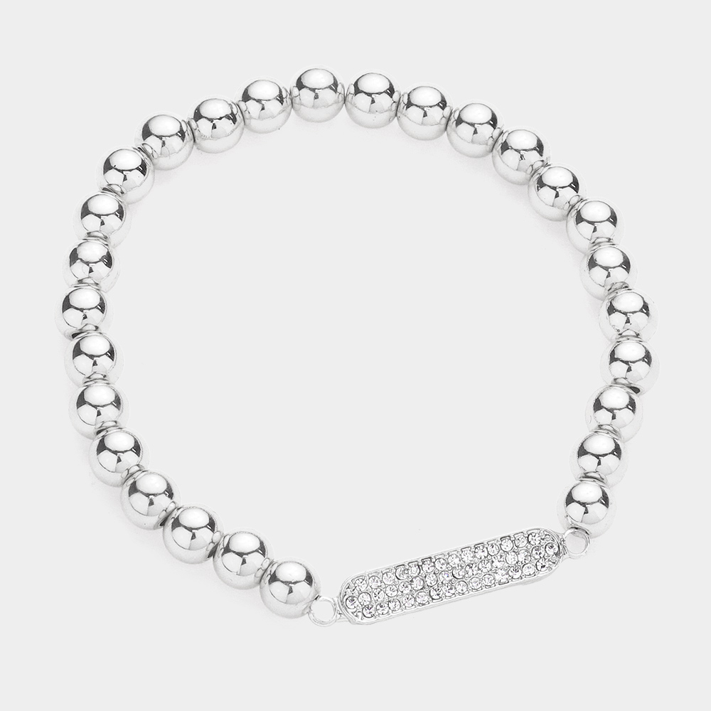Rhinestone Pave Oval Accented Metal Ball Stretch Bracelet
