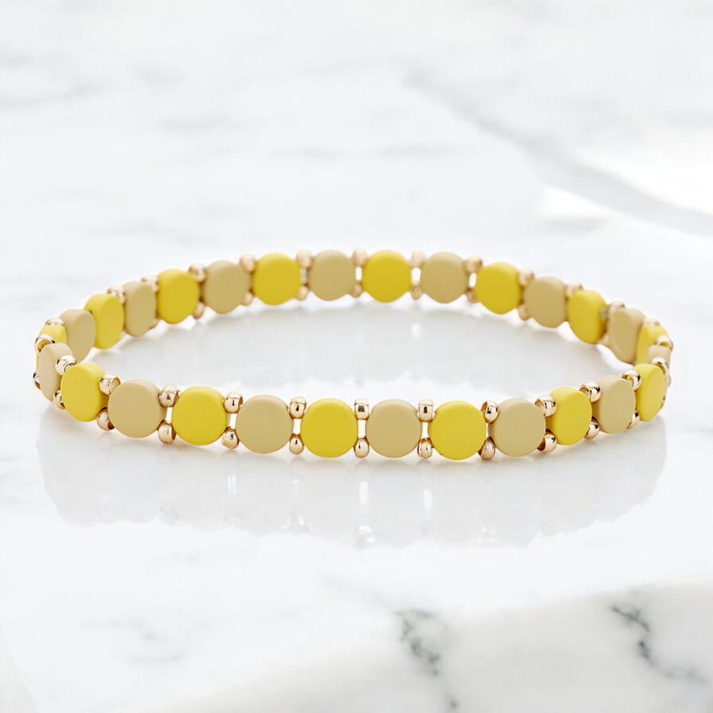 3PCS - Resin Metal Pebble Wire Beaded Stretch Multi Layered Bracelets