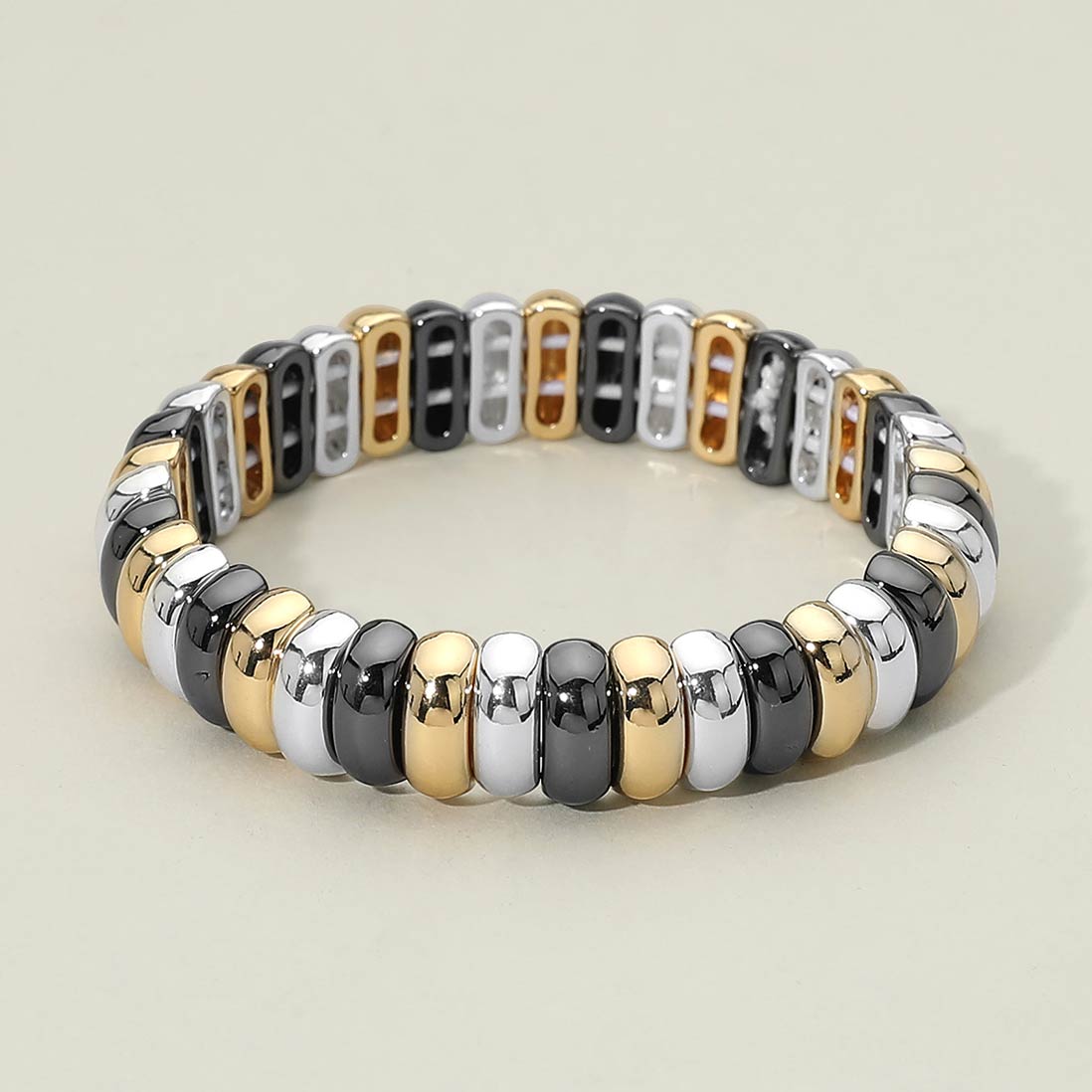 Details • Size : 0.5" H • Stretchable • This classic stretch link bracelet showcases smooth, rounded links arranged in a clean, uniform design. The flexible stretch construction allows for easy on-and-off wear while delivering a polished, timeless look. A versatile accessory suited for everyday styling, layering, boutique displays, and gift-ready collections. • Lead and Nickel Compliant