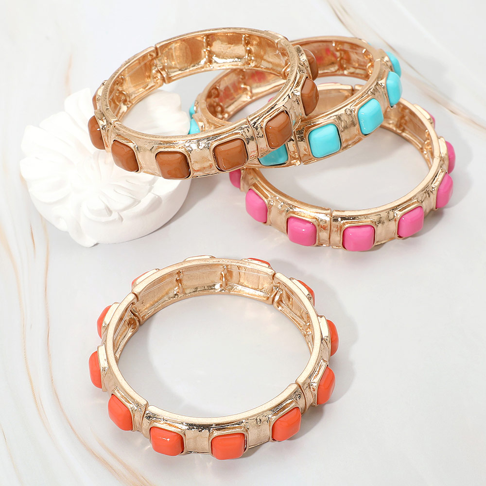 Square Bead Embellished Hammered Metal Stretch Bracelet Square Bead Embellished Hammered Metal Stretch Bracelet Square Bead Embellished Hammered Metal Stretch Bracelet