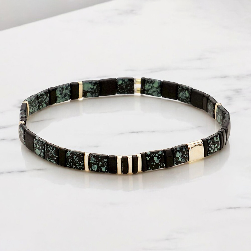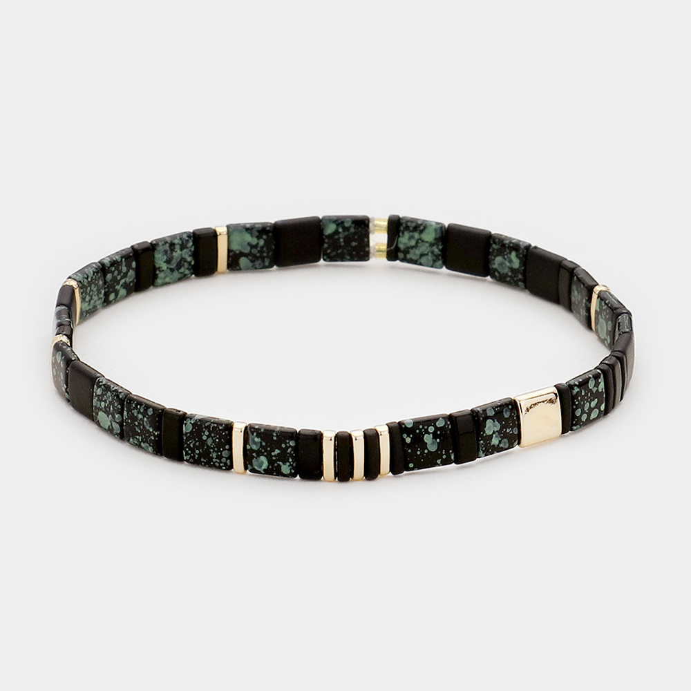 Two Tone Antique Metal Stone Boho Stretch Bracelet