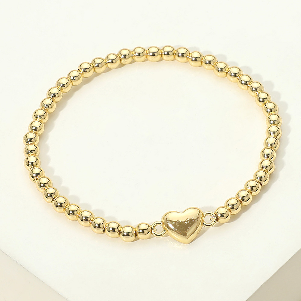 Details • Size : 0.3" H • Stretchable • This stretch bracelet features smooth rounded beads finished with a classic heart charm for a timeless, gift-ready look. Designed for easy slip-on wear, it offers everyday comfort and versatile styling. Perfect for layering or wearing solo, this bracelet adds a meaningful accent to casual outfits, special occasions, and curated accessory collections. • Stainless Steel