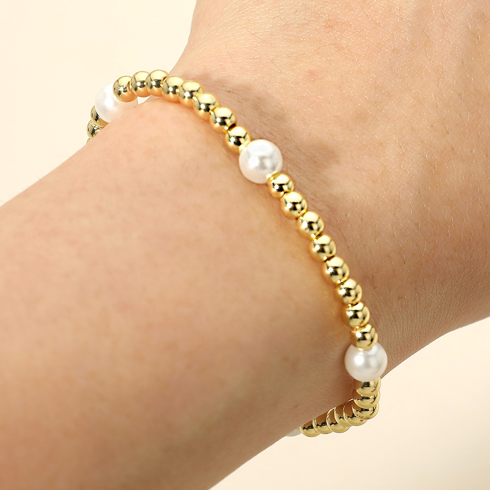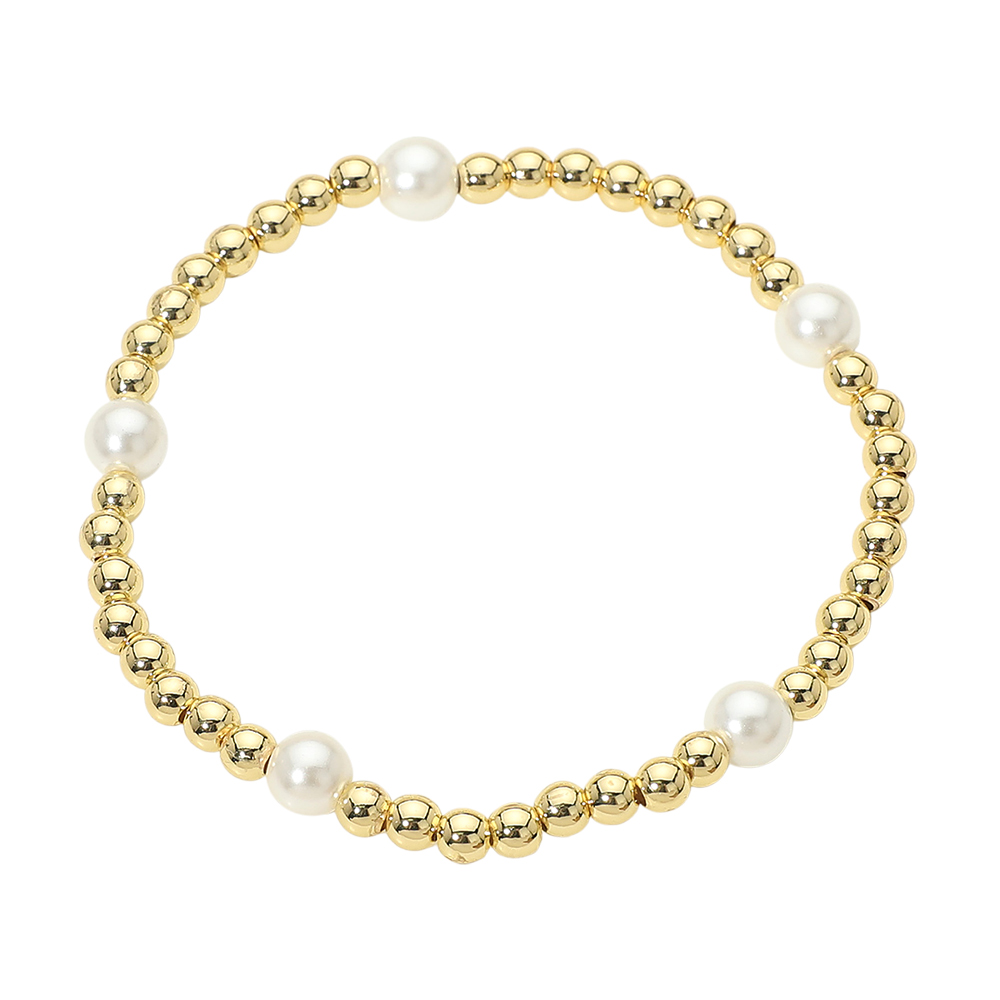 Details • Size : 0.25" H • Stretchable • This beaded stretch bracelet features a balanced design highlighted by smooth pearl accents for a refined, timeless look. Easy to wear and comfortable for daily styling, it layers effortlessly with other bracelets or stands out on its own. A versatile accessory suited for casual outfits, workwear, or special occasions, adding subtle elegance to any jewelry collection. • Stainless Steel