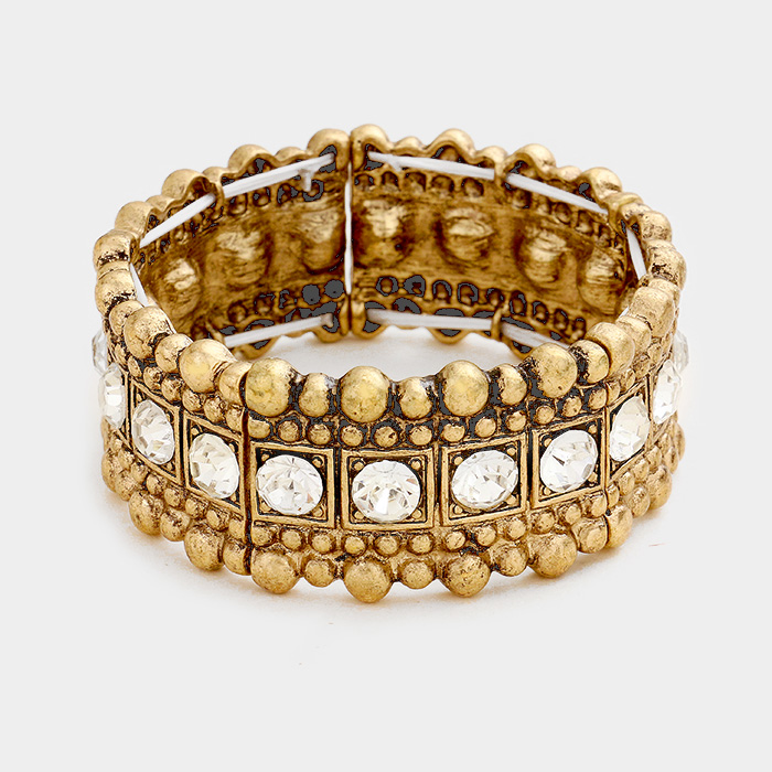 Stone Trim Metal Bubble Detail Stretch Bracelet