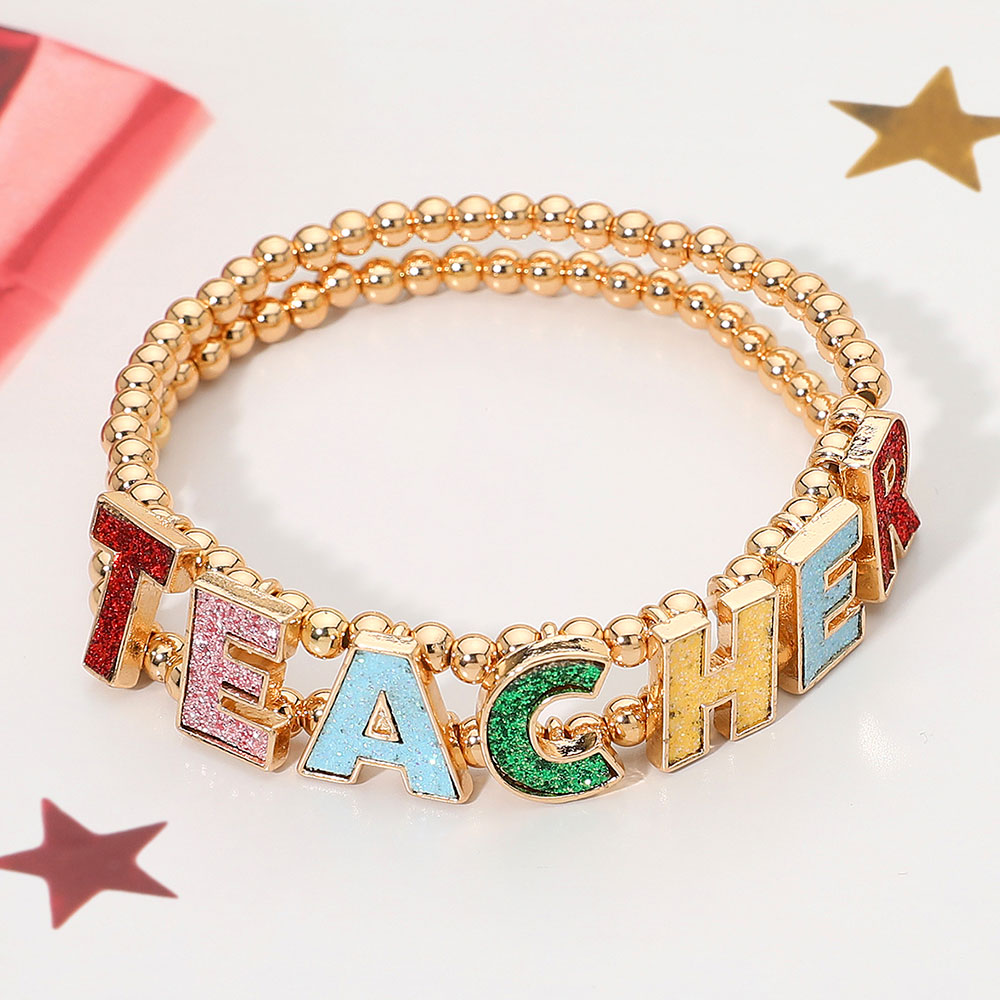 Details • Size : 0.5" H • Stretchable • A cheerful bracelet featuring bold letter charms spelling “TEACHER” on a stretch-bead design that slips on easily for everyday wear. Perfect as a thoughtful gift for educators, classroom celebrations, appreciation events, or casual accessorizing. • Lead and Nickel Compliant