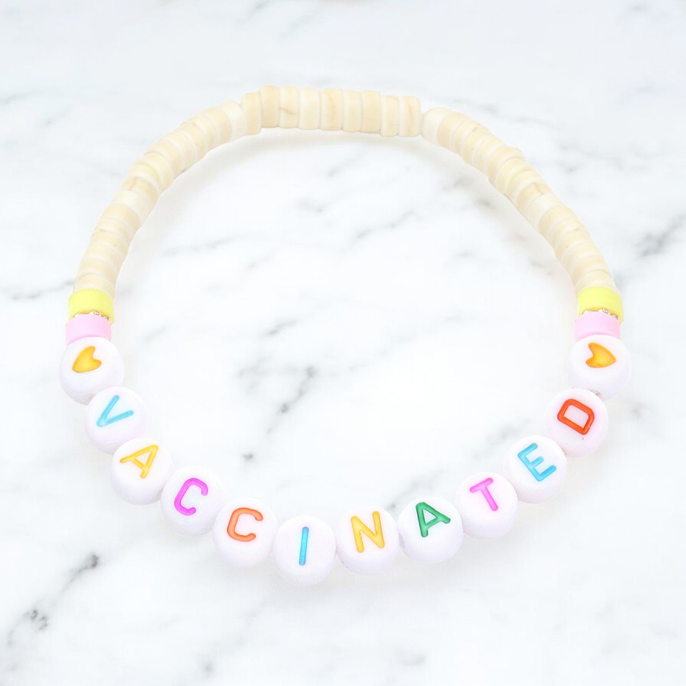 VACCINATED Heishi Beaded Message Stretch Bracelet