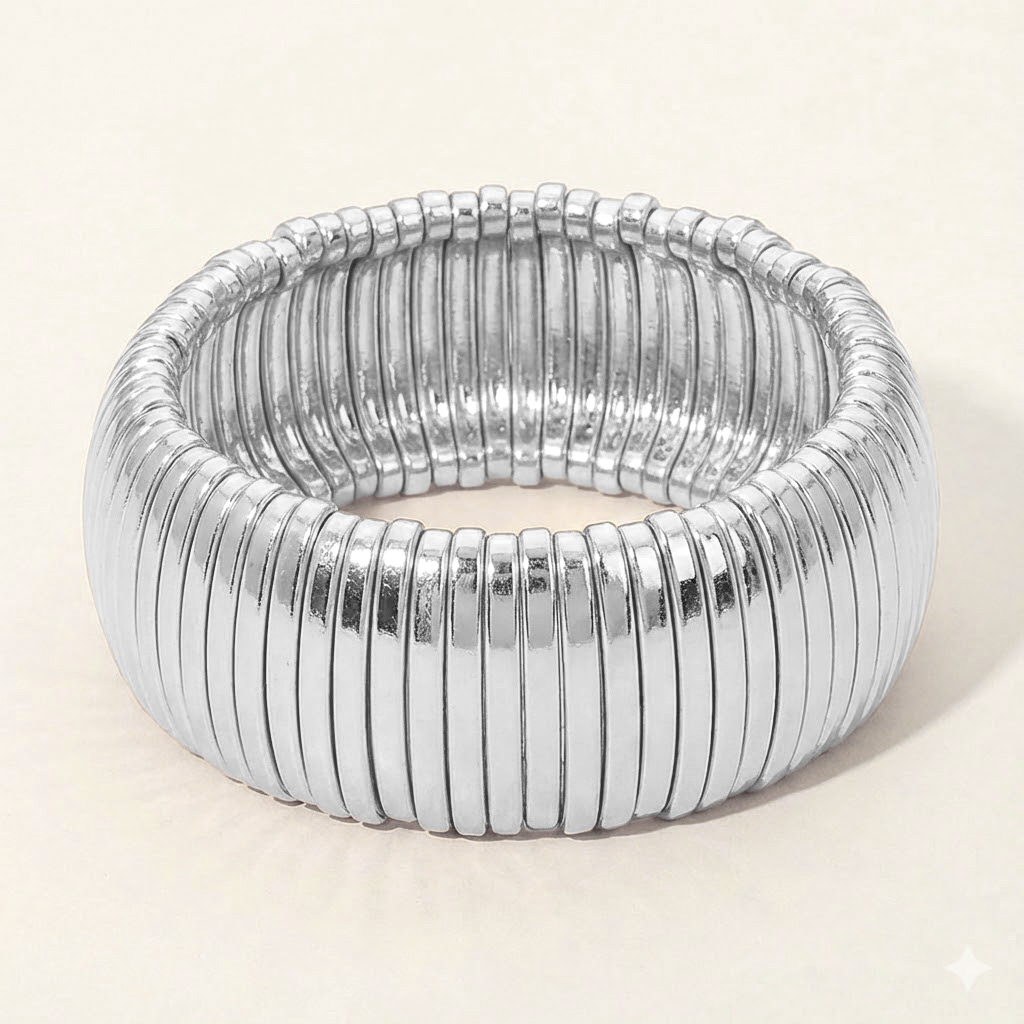 Wide Ribbed Matte Metal Ribbed Stretch Bracelet