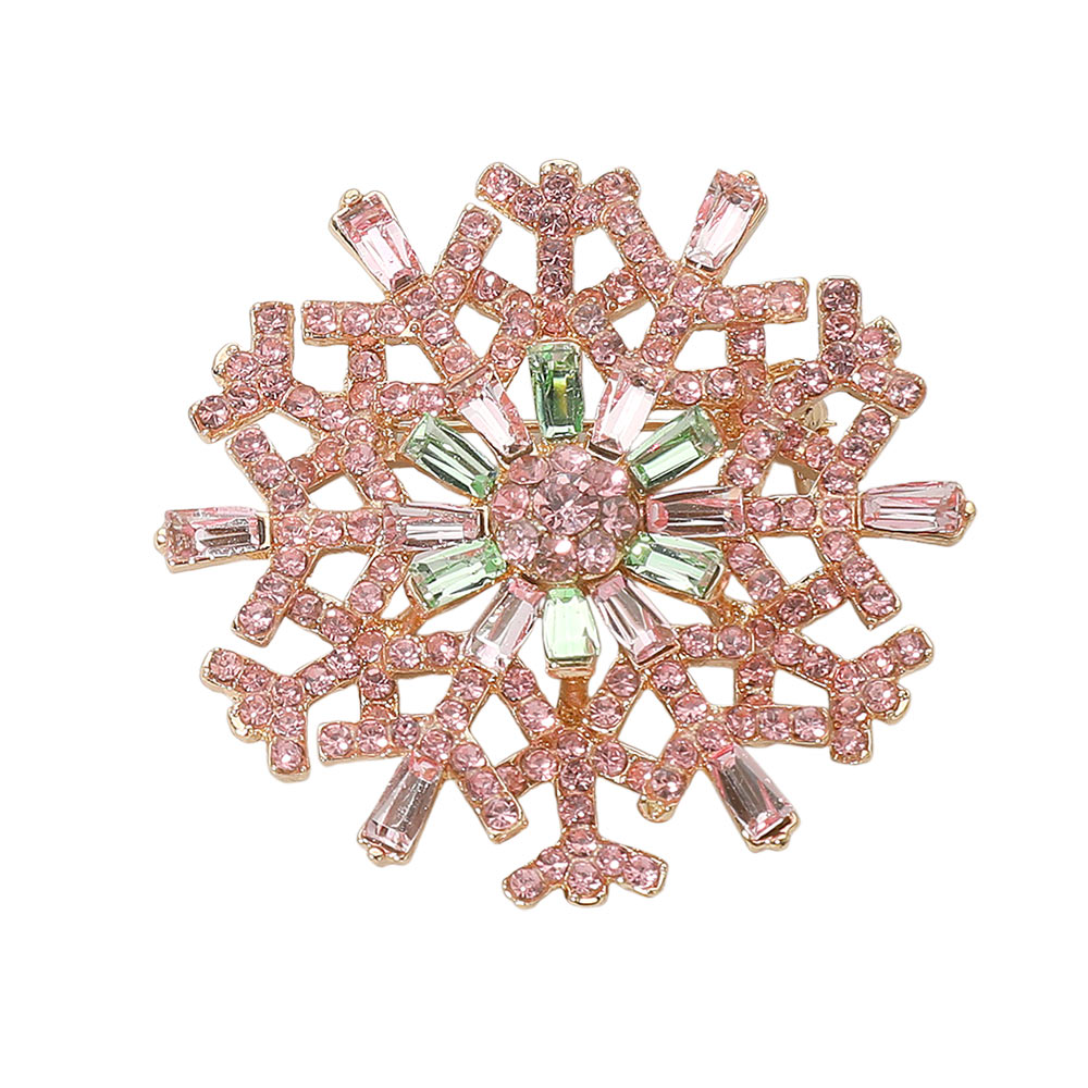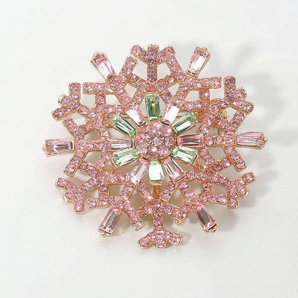 Details • Size : 2" X 2" • Pin Brooch • Shimmer in winter elegance with this snowflake brooch adorned with iridescent crystals and intricate detailing. A radiant accessory that captures light beautifully, perfect for festive outfits, seasonal events, or adding frosty sparkle to everyday looks. • Lead and Nickel Compliant