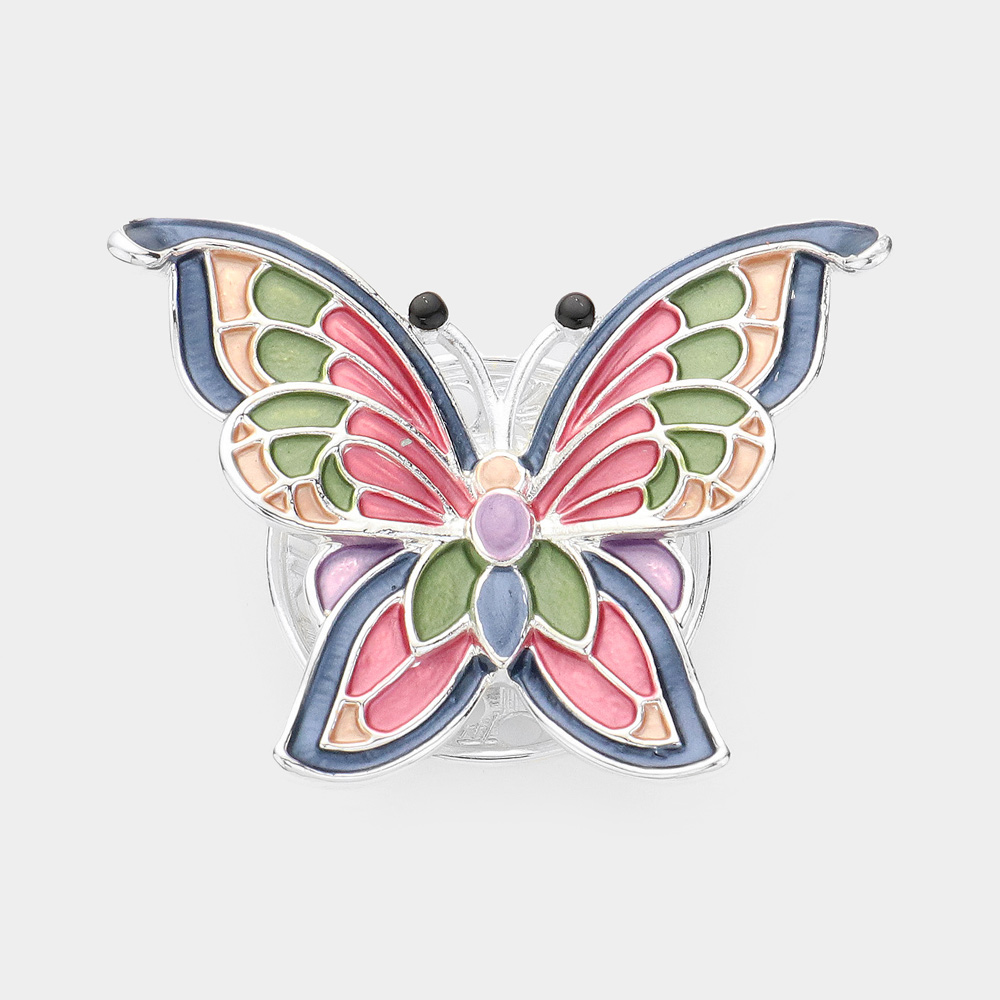 Celluloid Acetate Colored Metal Butterfly Pendant Necklace