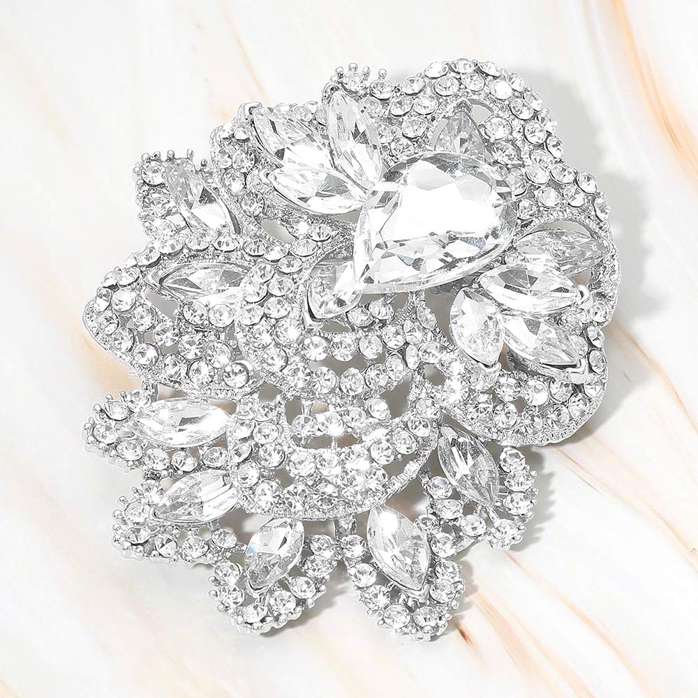 • This statement brooch showcases a striking teardrop centerpiece surrounded by layered sparkling accents that create a dramatic, light-reflecting finish. Designed to elevate any outfit, it adds an elegant touch ideal for formal events, special occasions, or standout everyday styling.
