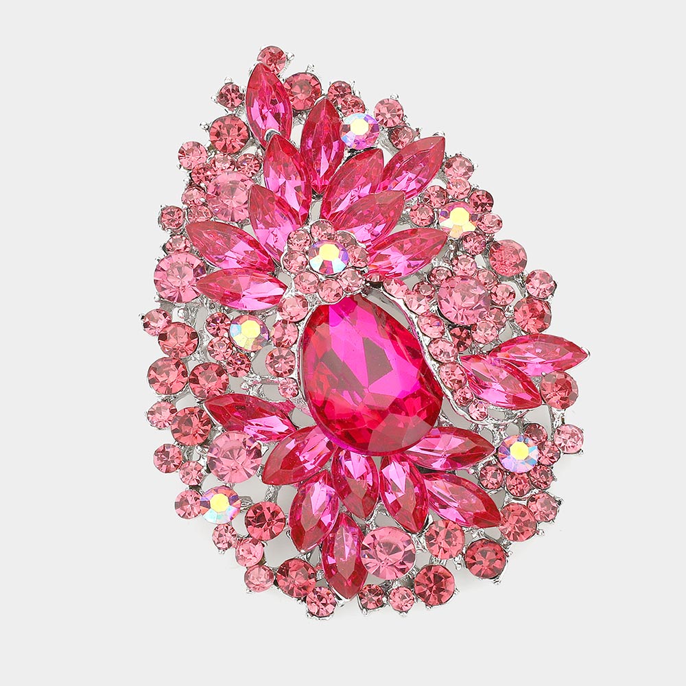 Crystal Rhinestone Teardrop Bouquet Pin Brooch