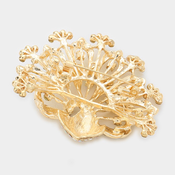 Crystal Stone Paved Peacock Pin Brooch