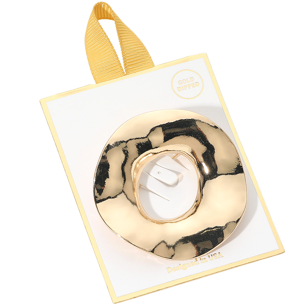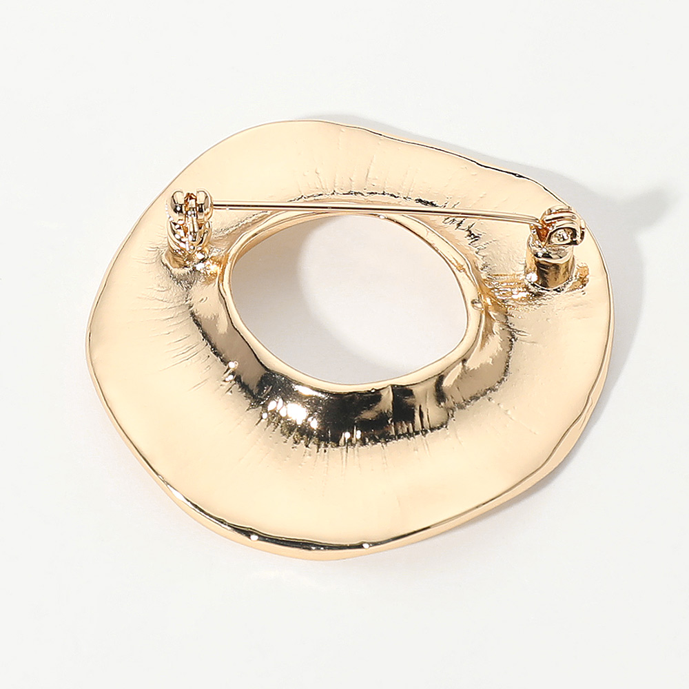 Details • Size : 1.8" X 1.8" • Pin Brooch • Modern round brooch featuring an abstract organic pattern with a smooth, sculptural finish. A striking accessory ideal for jackets, scarves, dresses or bags, adding artistic flair and bold sophistication to any outfit. Perfect for special occasions or elevated everyday style. • Gold Dipped • Lead and Nickel Compliant