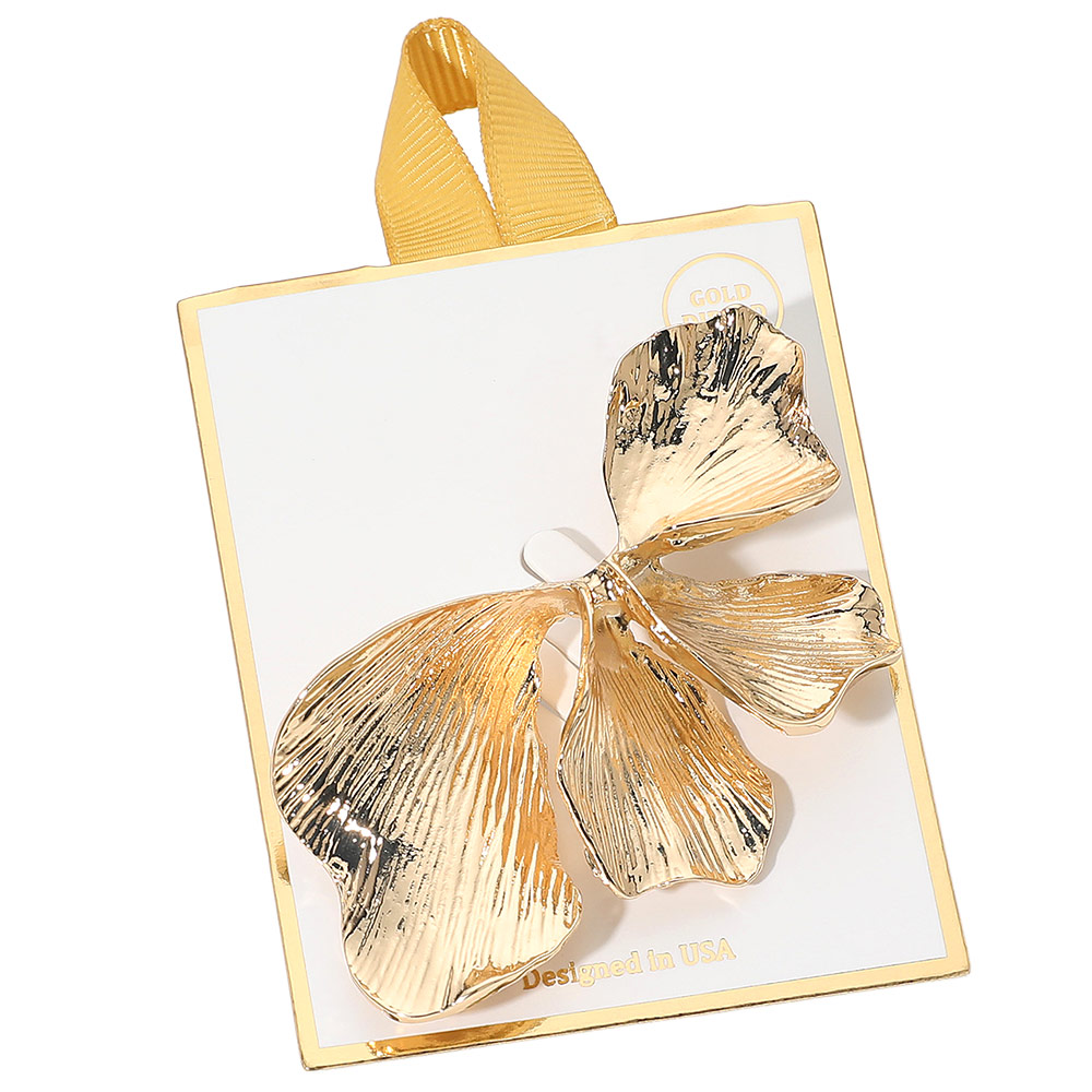 Details • Size : 2.75" X 1.5" • Pin Brooch • Elegant oversized brooch featuring sculpted petal-inspired shapes with a textured, organic look. A statement accessory perfect for coats, scarves, dresses or bags, adding artistic flair and bold sophistication to any outfit. Ideal for special events or elevated everyday style. • Gold Dipped • Lead and Nickel Compliant