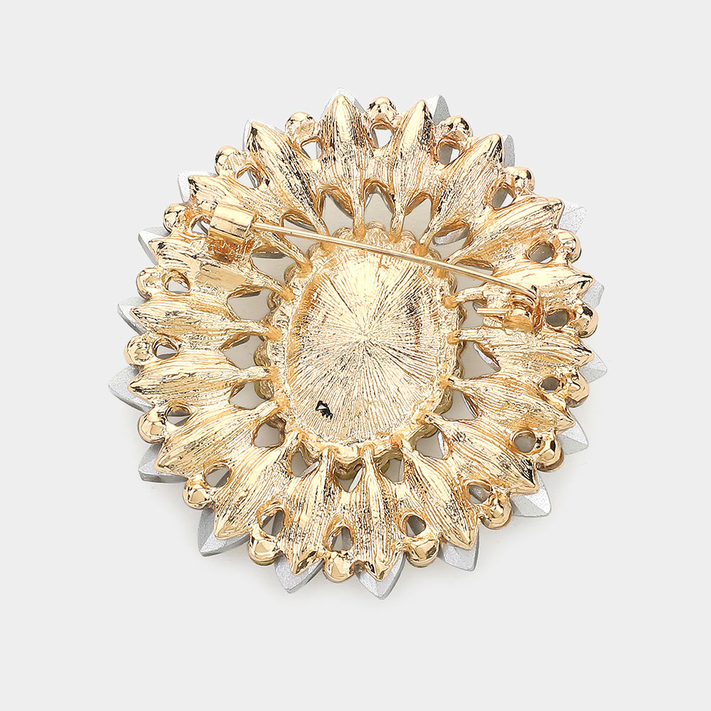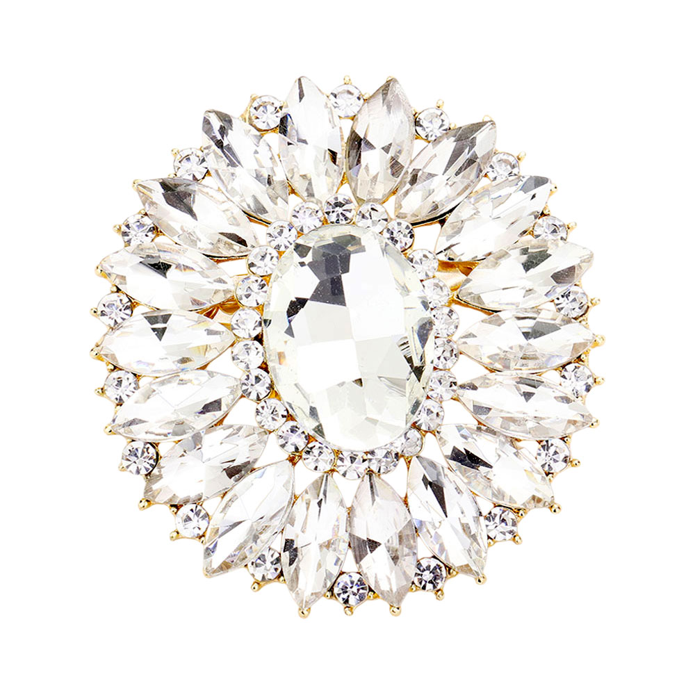 • Striking oval brooch featuring a radiant crystal design that adds a vibrant and glamorous touch to jackets, scarves, or dresses. A standout accessory perfect for making a stylish statement at any occasion.