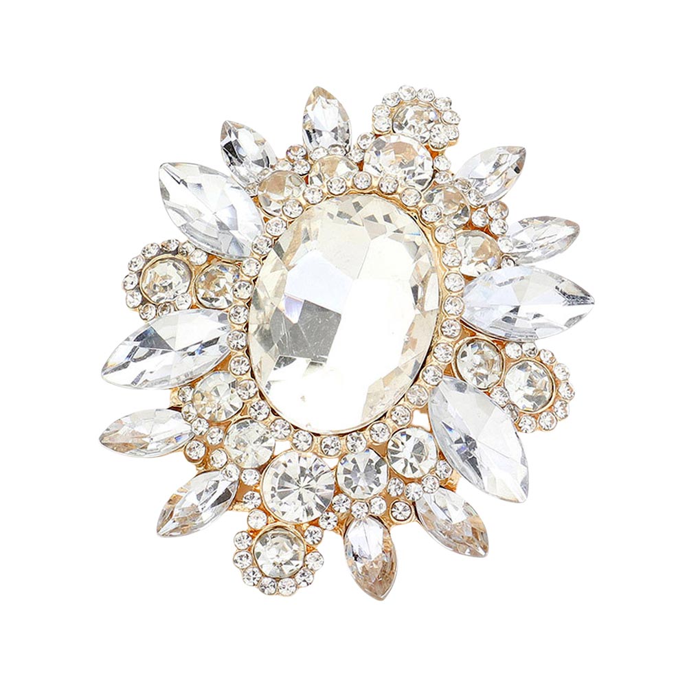 • Make an unforgettable statement with this radiant floral brooch featuring brilliant sparkling stones arranged around a large center gem. Its eye-catching shimmer adds sophistication to jackets, scarves, bags, and dresses, making it the perfect accessory for special occasions or elegant everyday styling.