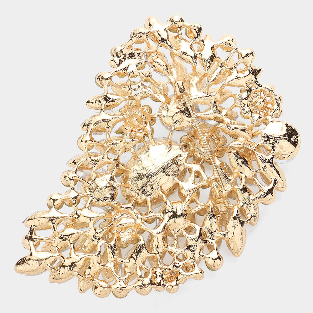 Rhinestone Paved Floral Leaf Adjustable Evening Bracelet