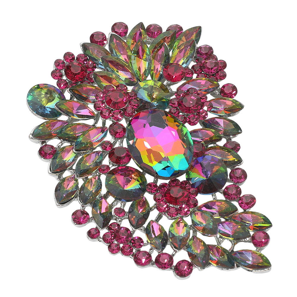Details • Size : 3" X 4" • Pin Brooch • Eye-catching statement brooch featuring a clustered gemstone design that adds instant glamour to any outfit. Perfect for special occasions or elevating everyday style, this radiant accessory brings a touch of elegance and sparkle to your look. • Lead and Nickel Compliant