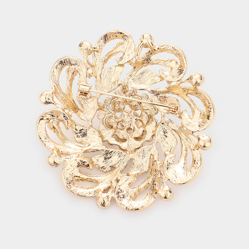 Over Sized Pearl Paved Textured Open Circle Metal Pendant Statement Necklace