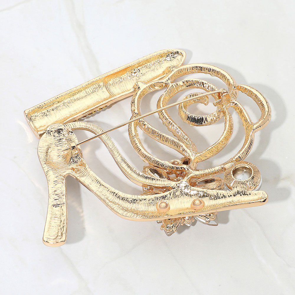 Details • Size : 3.2" X 3.5" • Pin Brooch • Glamorous brooch featuring a high heel, lipstick, floral accents, and sparkling crystals. A bold statement accessory perfect for adding flair to jackets, scarves, or bags. Ideal for special occasions or gifting with a touch of fashion-forward fun. • Lead and Nickel Compliant