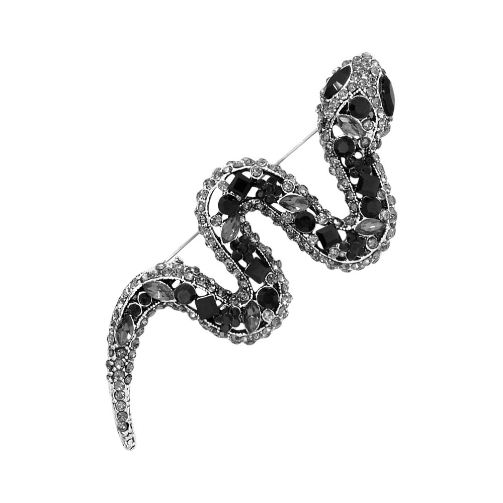 Details • Size : 3.5" X 1.25" • Pin Brooch • Make a bold style statement with this glamorous serpent brooch, adorned with an array of sparkling stones in an intricate design. Perfect for adding an edgy yet elegant touch to any outfit, this unique accessory is ideal for gifting or elevating your personal collection. • Lead and Nickel Compliant