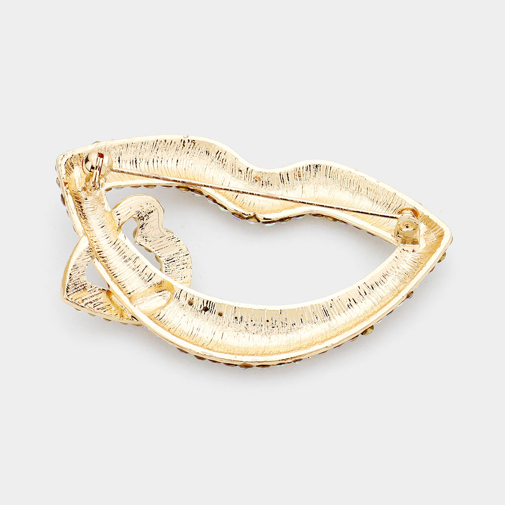 Rhinestone Embellished Safety Pin LOVE Star Centered Enamel Heart Pendant Necklace