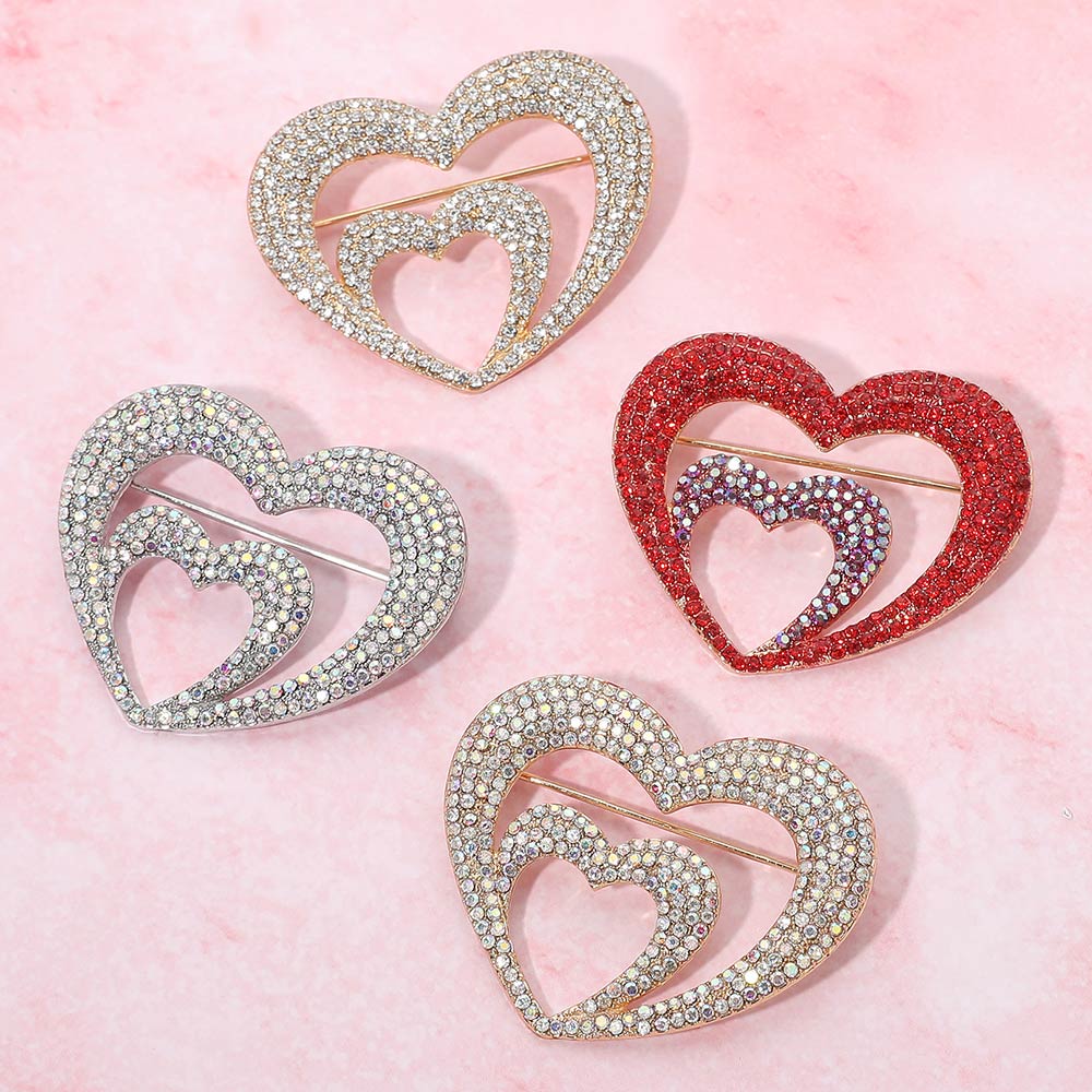 • Elegant double heart brooch featuring layered heart silhouettes with sparkling rhinestone accents. A romantic statement accessory ideal for jackets, dresses, scarves, or bags, perfect for gifting, special occasions, and expressive everyday styling.