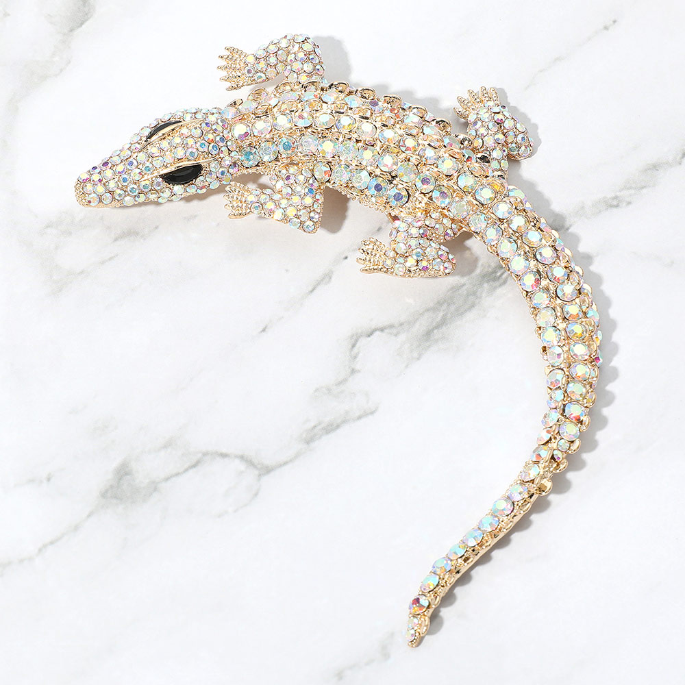 • Unique lizard-shaped brooch embellished with sparkling crystals, perfect for adding a bold and stylish touch to jackets, scarves, or bags. A standout accessory that elevates any outfit with charm and personality.
