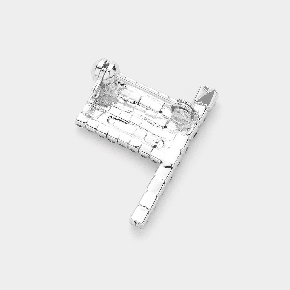 Details • Size : 0.9" X 1.2" • Pin Brooch • Stylish flag shaped brooch pin designed with a classic waving silhouette and sparkling rhinestone accents. Perfect for adding a bold statement to jackets, blazers, hats, scarves, or bags. Ideal for patriotic events, celebrations, themed outfits, gifting, or elevating everyday accessories with eye catching detail. • Lead and Nickel Compliant