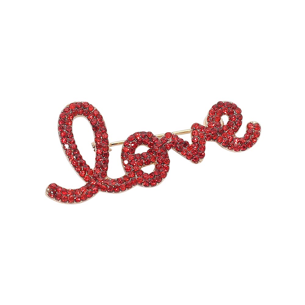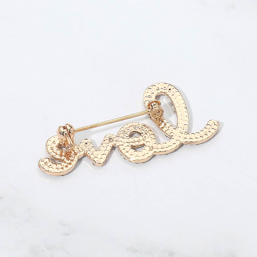 Details • Size : 2.2" X 0.9" • Pin Brooch • Stylish script love brooch featuring sparkling crystal accents for a meaningful statement look. Ideal for adding charm to jackets, dresses, scarves, hats, or bags, this versatile accessory brings a romantic touch to everyday outfits and special occasion styling. • Lead and Nickel Compliant