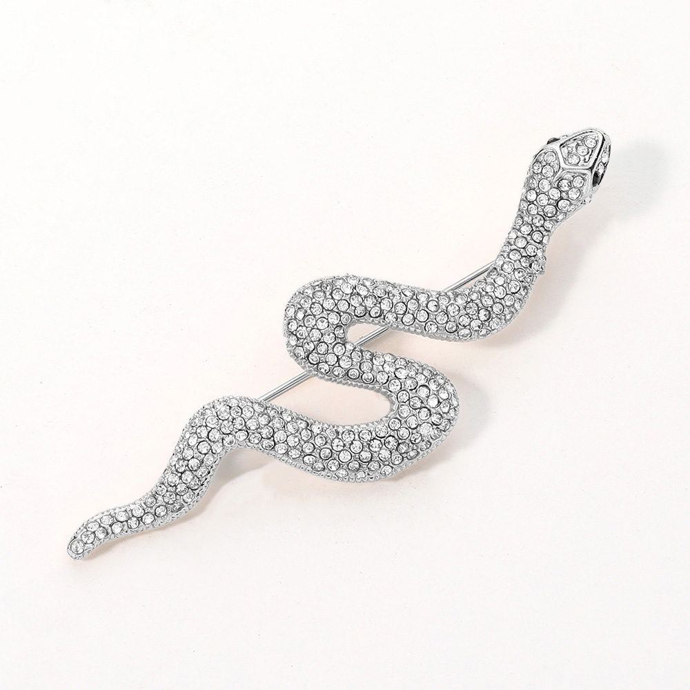 • This crystal snake brooch brings a touch of refined mystique to your look, featuring a sleek serpent silhouette encrusted with shimmering stones. Perfect for adding a luxurious accent to blazers, scarves, or evening attire, it’s a statement piece of timeless allure and sophistication.