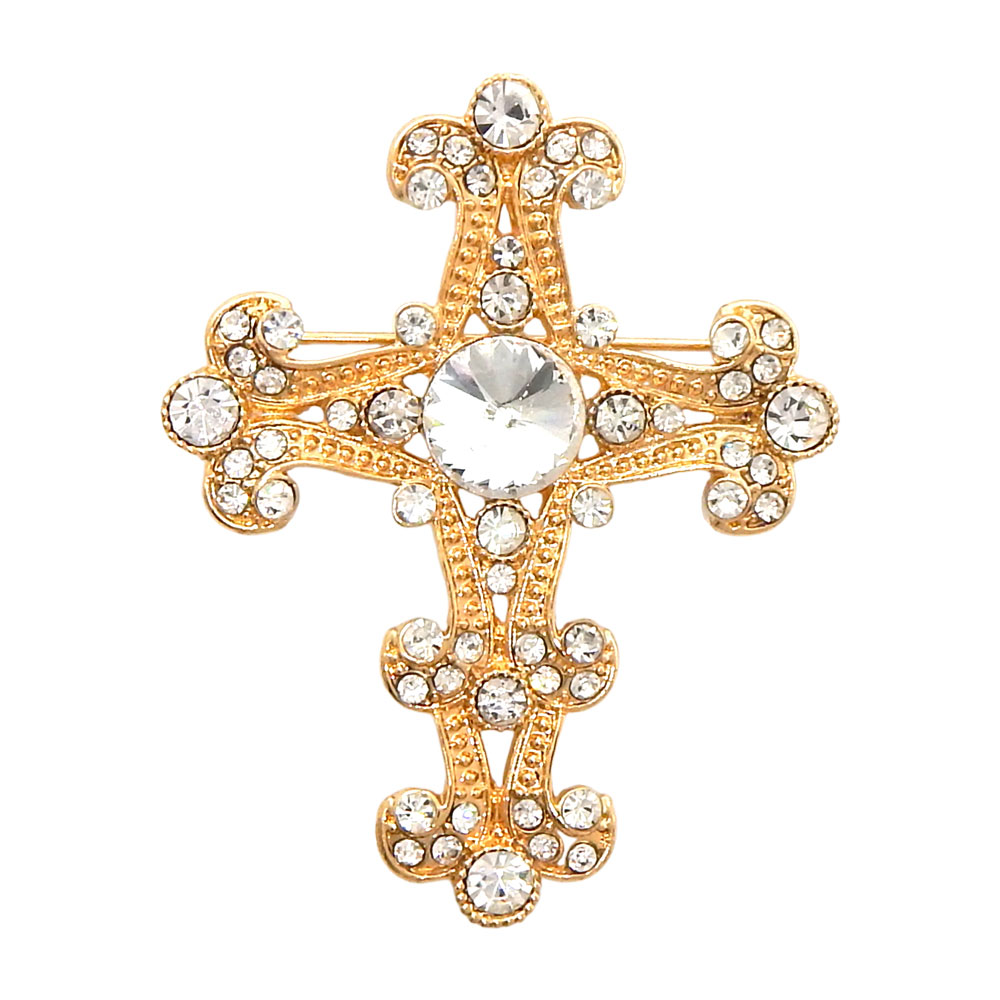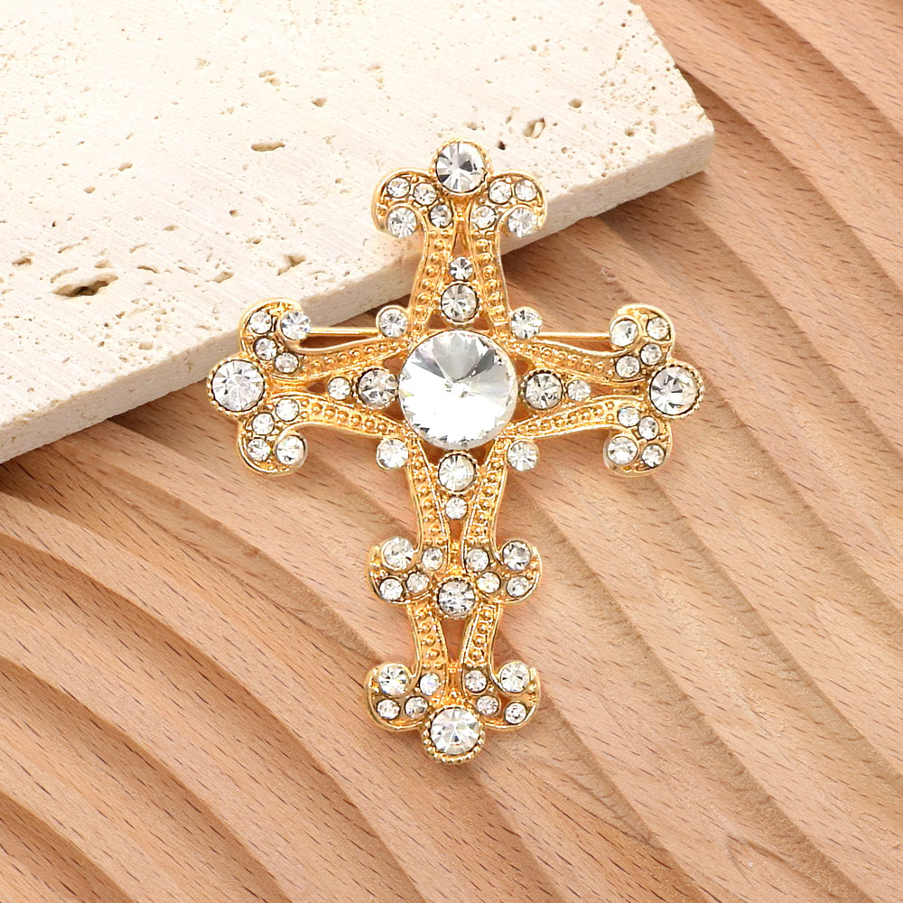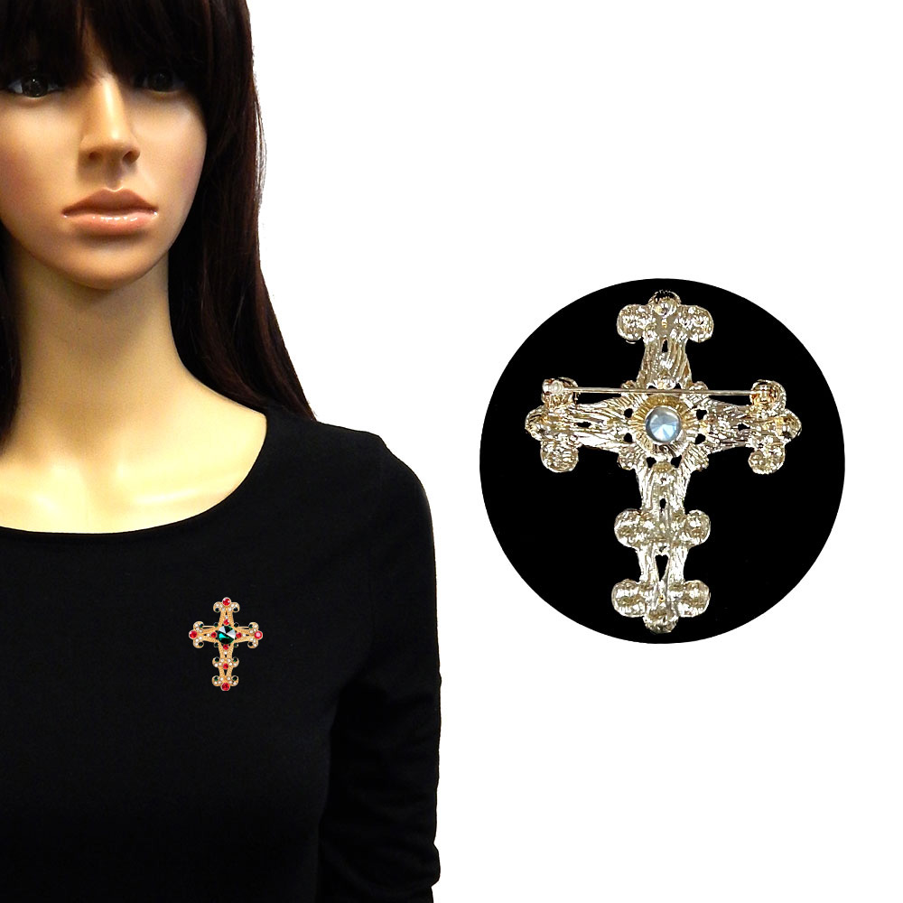 Stone Embellished Gothic Cross Pin Brooch