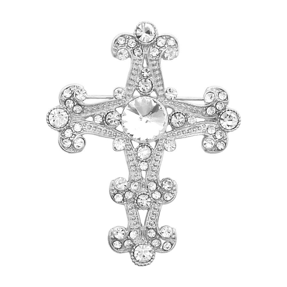Stainless Steel CZ Stone Paved Cross Pendant Necklace