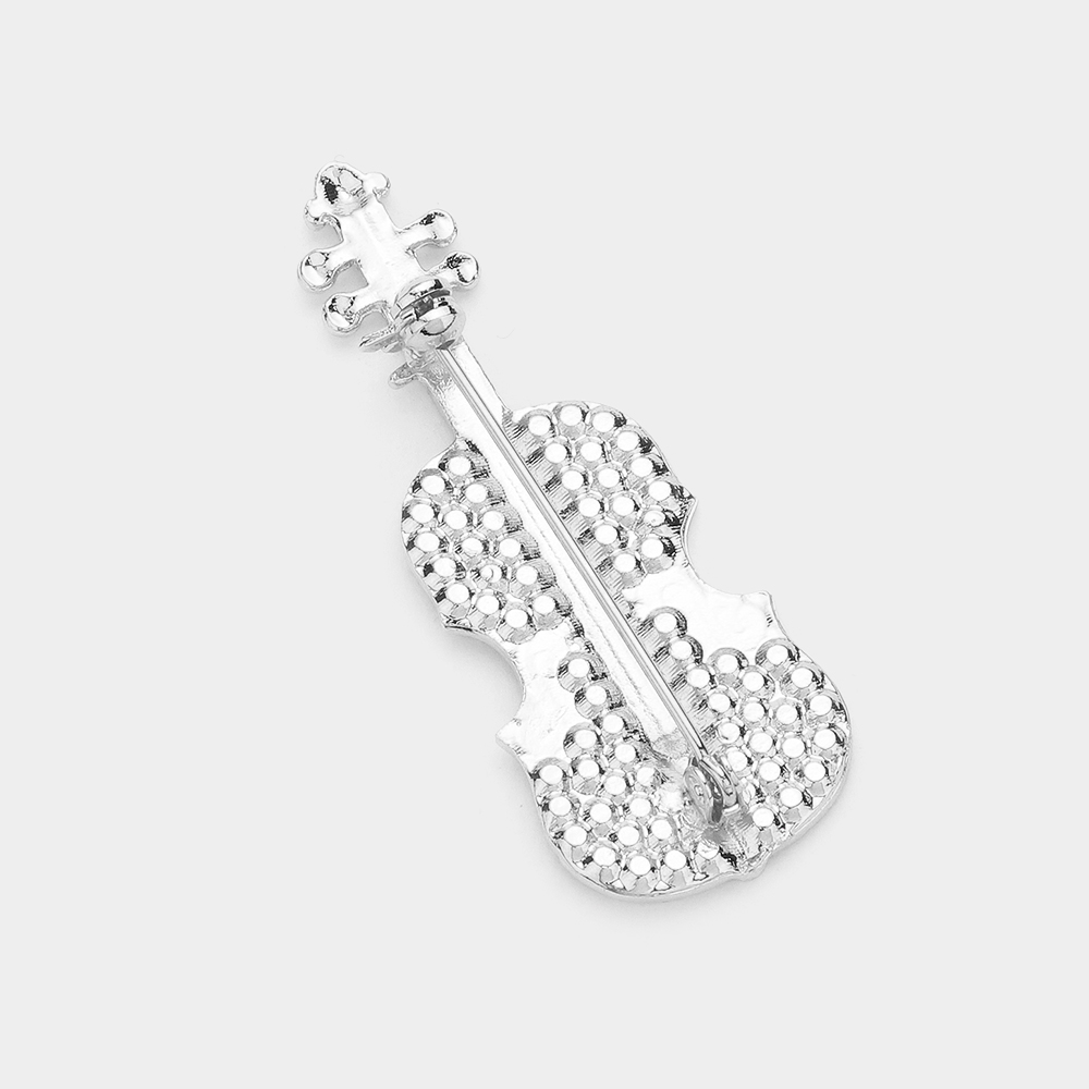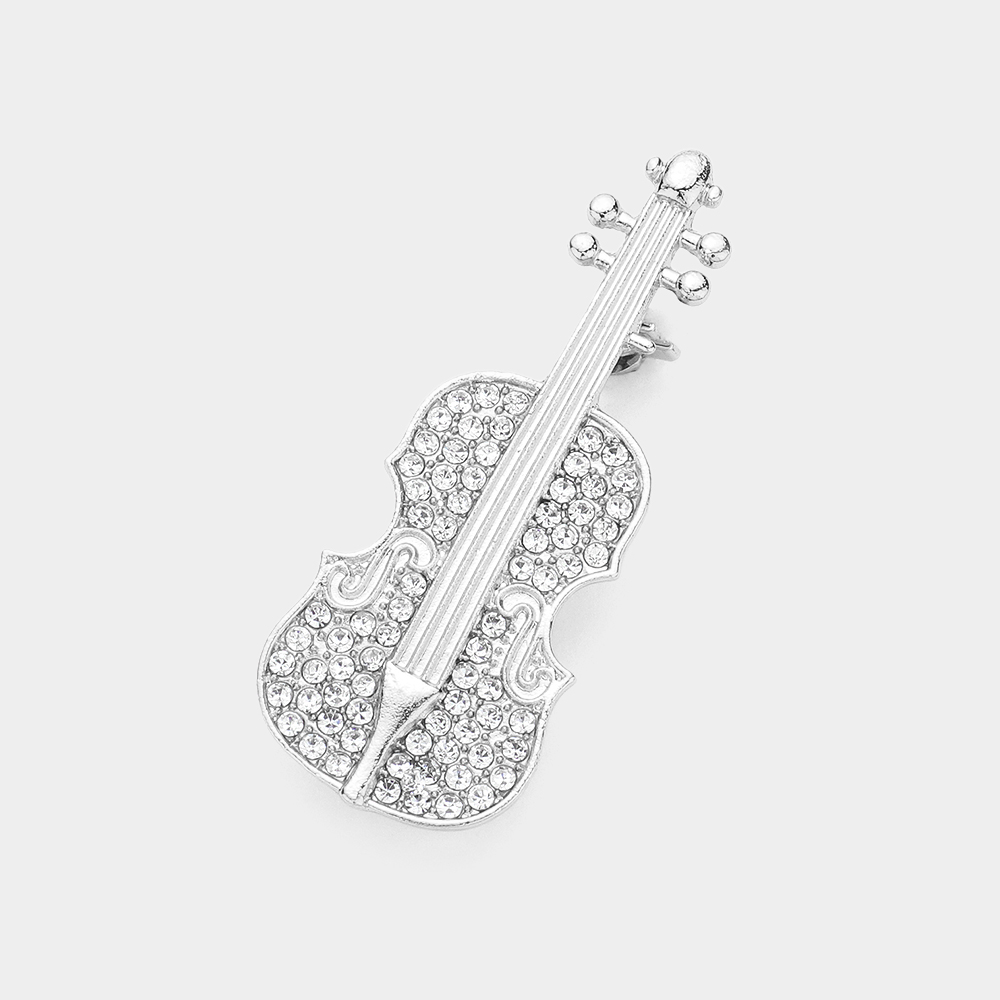 Details • Size : 1" X 2.3" • Pin Brooch • Elegant violin-shaped brooch pin accented with sparkling crystal details for a refined, artistic look. Designed to add musical charm to jackets, dresses, scarves, or bags, this statement accessory is perfect for music lovers, performers, and gift collections seeking a timeless, expressive accent. • Lead and Nickel Compliant