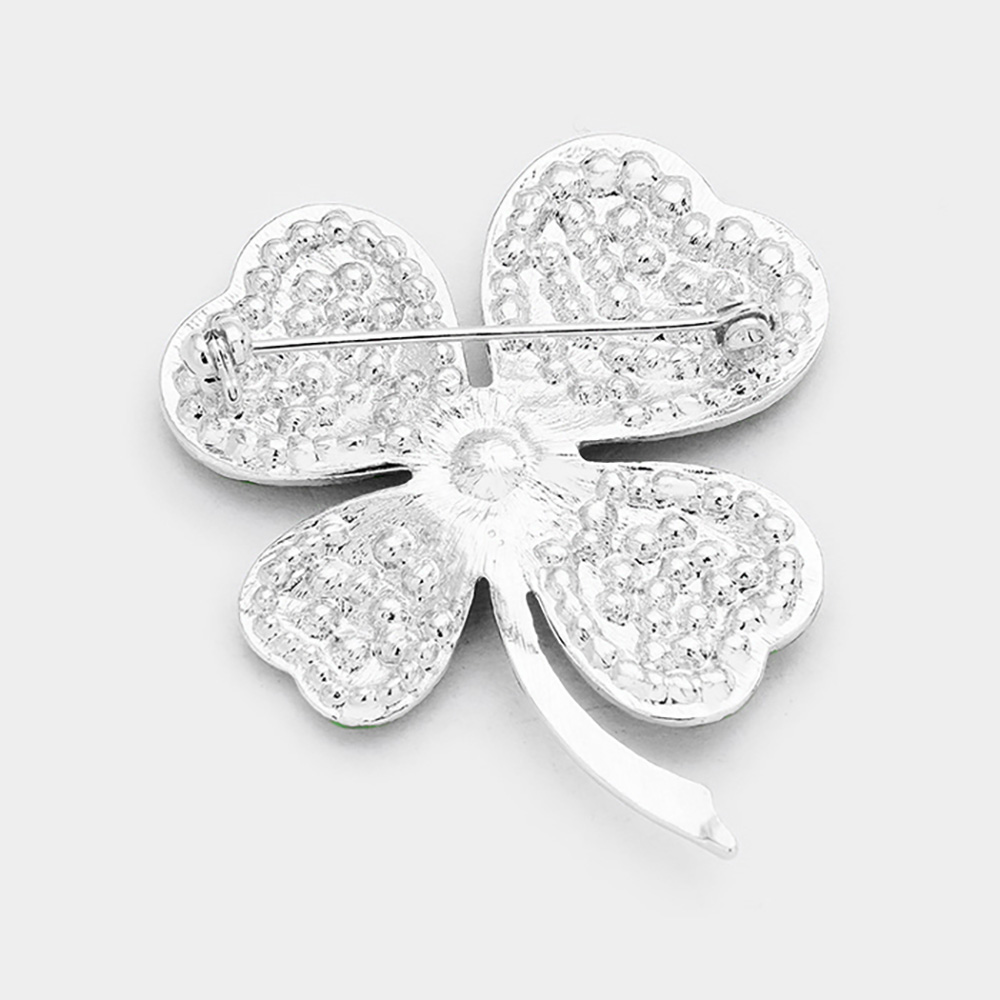 Stone Paved Clover Pin Brooch
