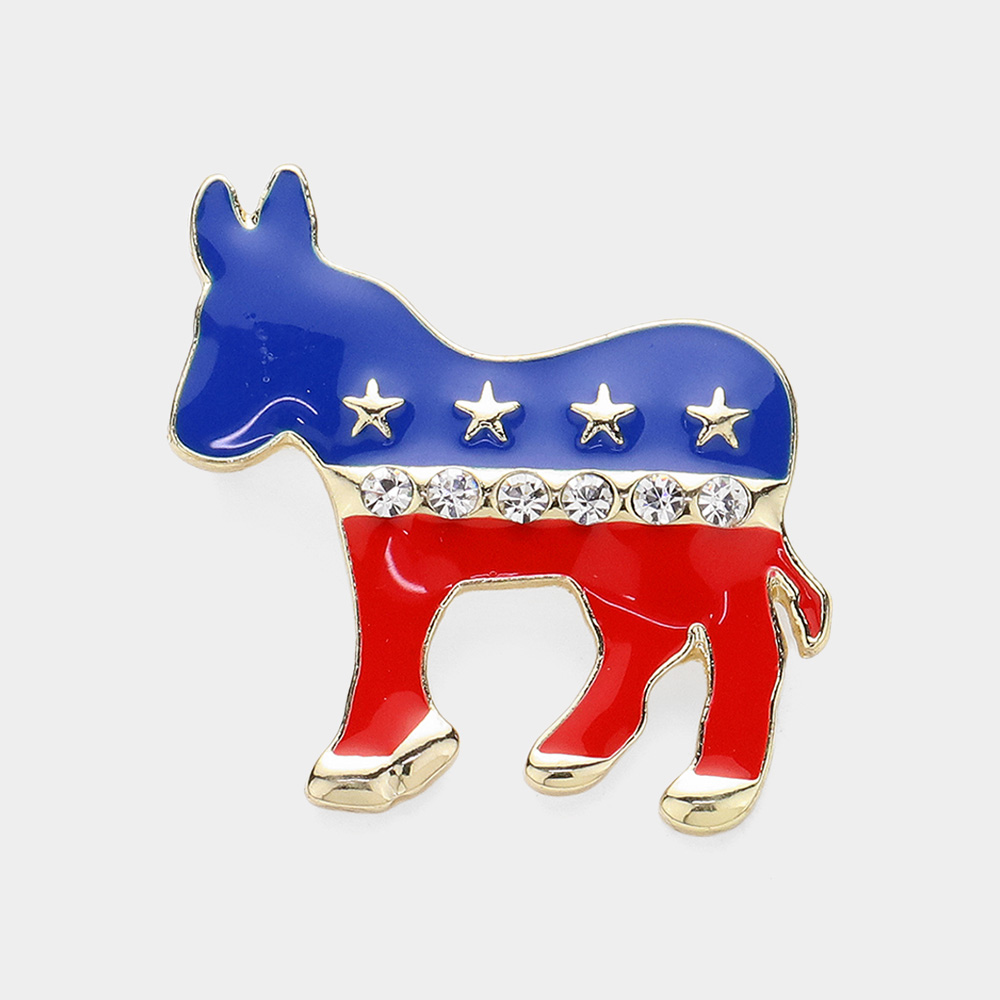 Stone Paved Enamel American USA Democrat Donkey Pin Brooch