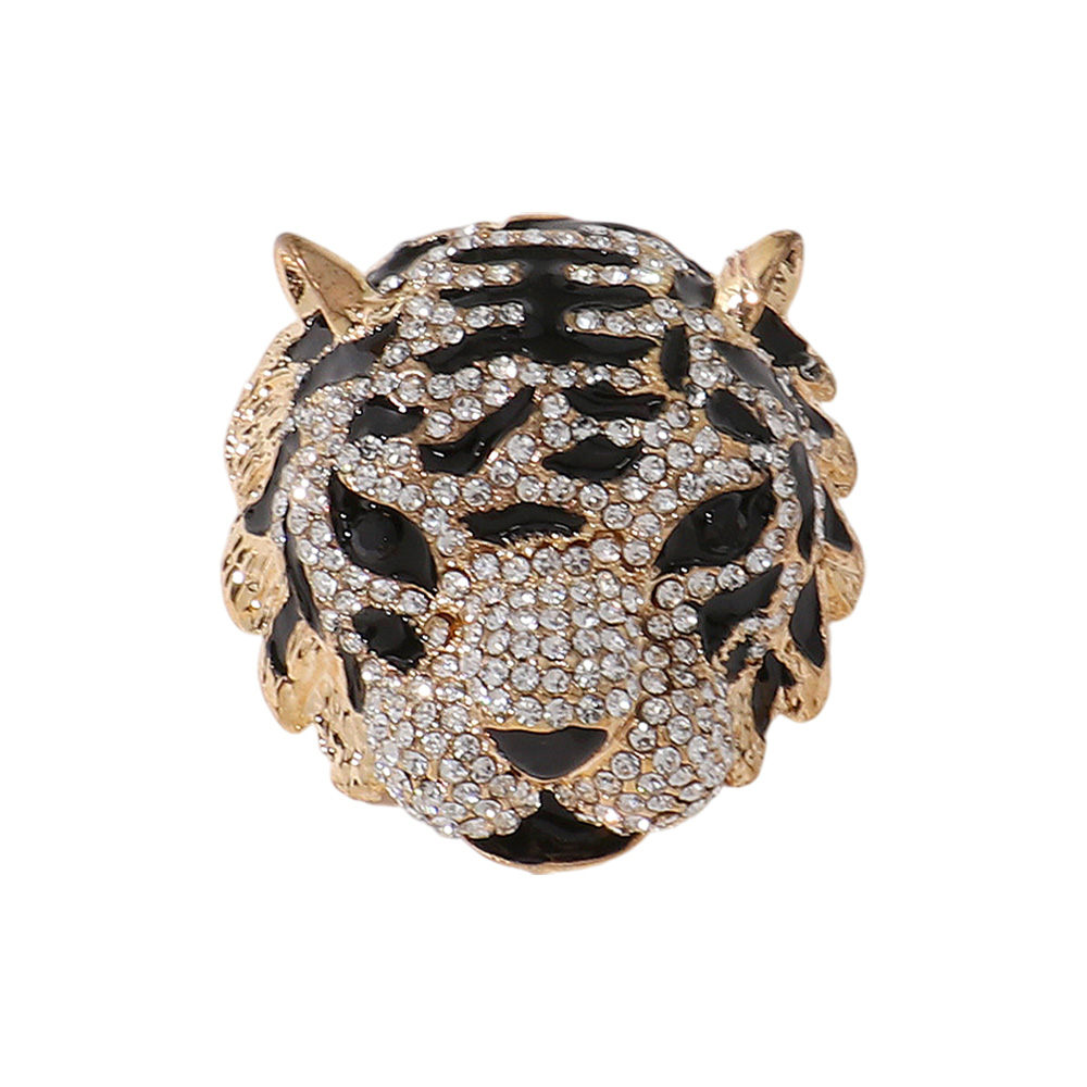 14K Gold Plated CZ Stone Paved Leopard Panther Twisted Open Rectangle Drop Earrings