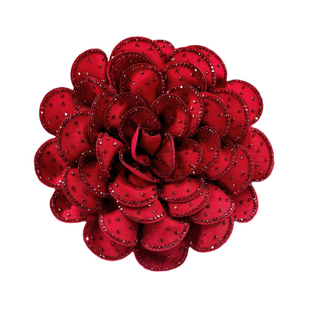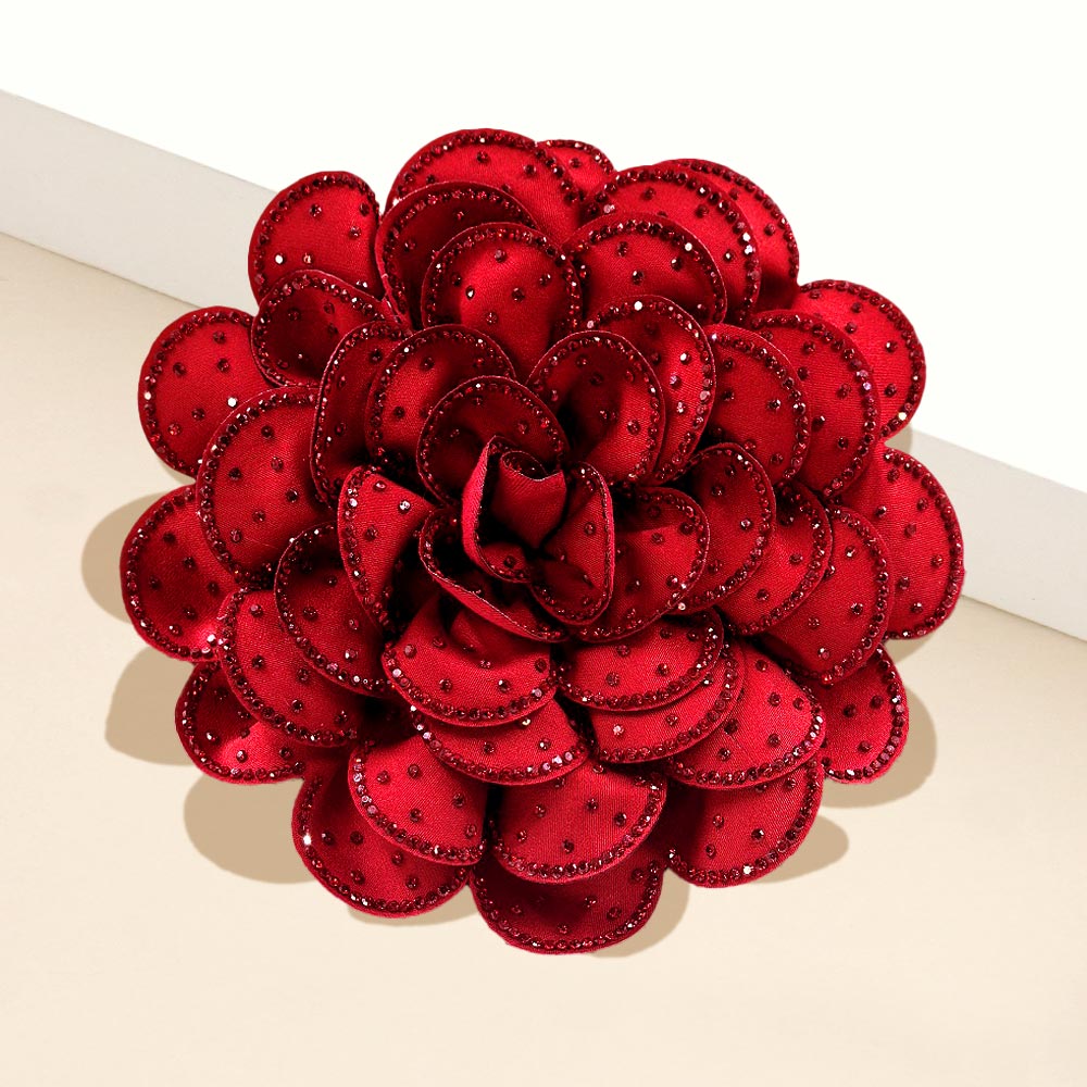 Details • Size : 5.5" X 5.5" • Dual : Brooch / Hair Pinch Clip • Enhance any outfit or hairstyle with this layered floral brooch and hair clip featuring shimmering accents and dimensional petal detail. Designed for versatile styling on scarves, jackets, bags, or hair, it makes a graceful gift or everyday accessory that adds refined sparkle and timeless elegance.