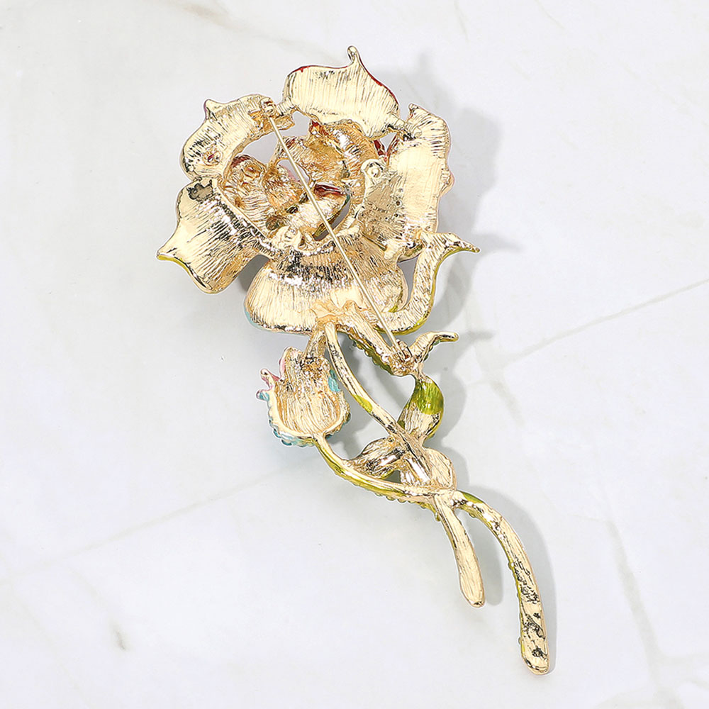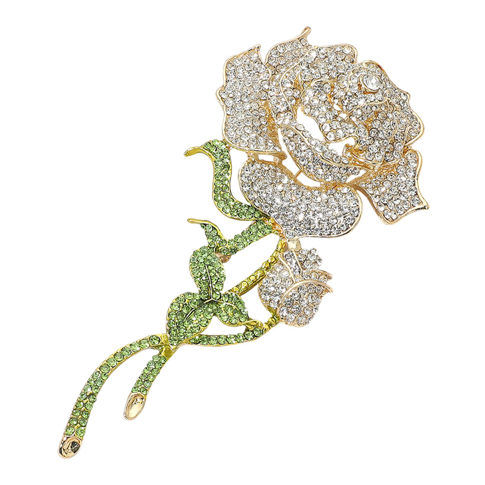 Details • Size : 2.5" X 5.5" • Pin Brooch • Chic rhinestone rose brooch featuring a detailed floral silhouette with shimmering stones on the petals, stem, and leaves. Perfect for accessorizing jackets, dresses, scarves, or bags with a refined and eye-catching statement touch. • Lead and Nickel Compliant
