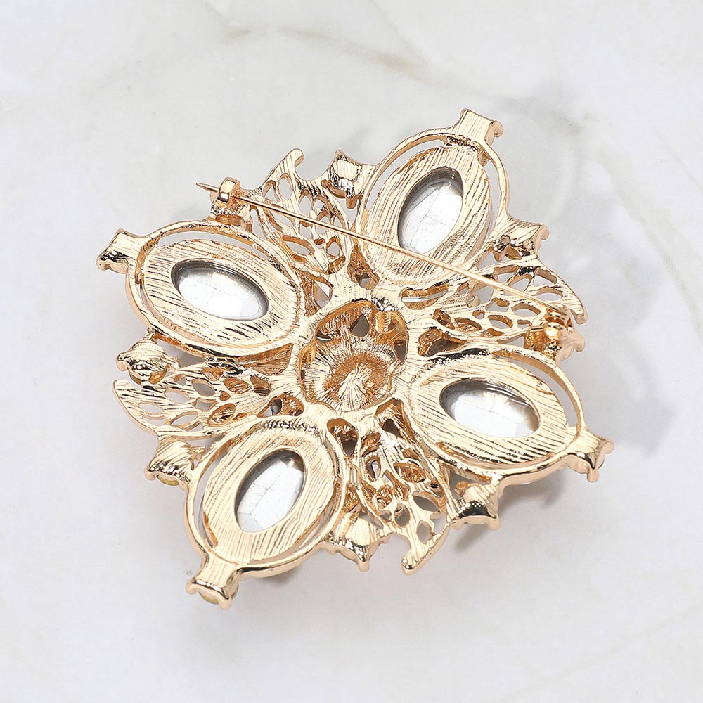 Details • Size : 3.25" X 3.5" • Pin Brooch • Elevate any outfit with this vintage floral crystal brooch designed with layered faceted accents and ornate detailing. Perfect for pinning on jackets, scarves, bags, or dresses, it adds dramatic sparkle and refined style, making it a standout accessory or thoughtful gift for special occasions and everyday elegance. • Lead and Nickel Compliant