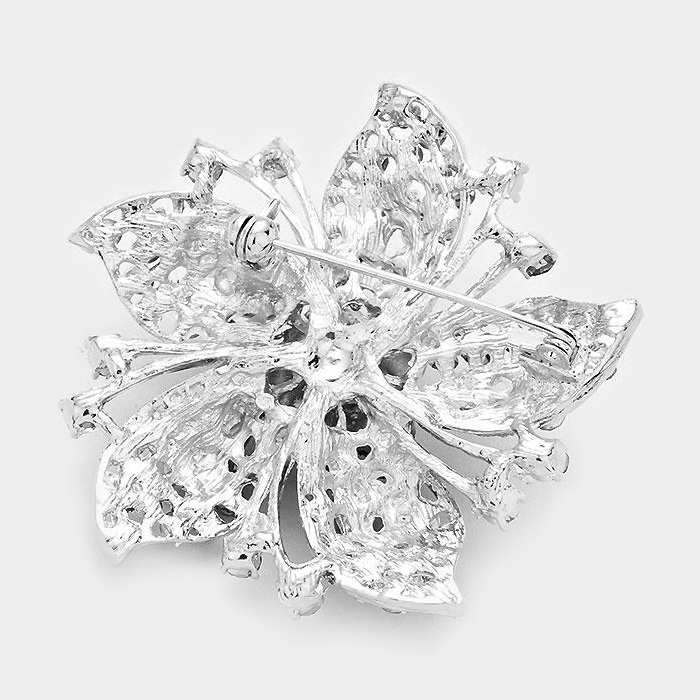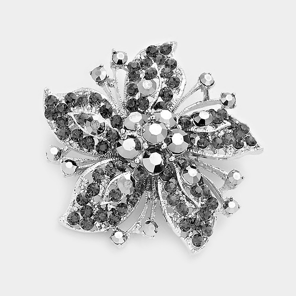 Flower Stone Cluster Pointed Glass Stone Embellished Leaf Pin Brooch