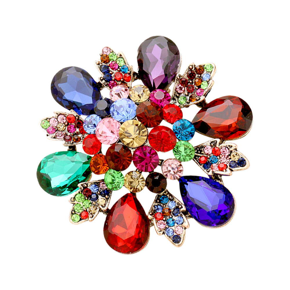 Details • Size : 2.5" x 2.5" • Pin Brooch • This elegant crystal flower brooch adds a radiant touch to any outfit with its beautifully arranged sparkling stones and refined floral silhouette. Perfect for elevating everyday looks or enhancing formal attire, it offers timeless charm and eye-catching brilliance. • Lead and Nickel Compliant