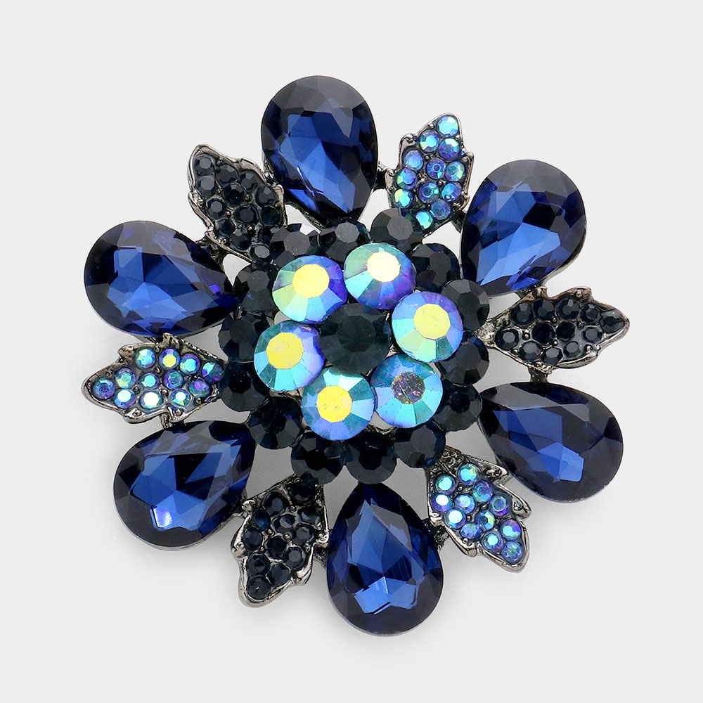 Floral Glass Stone Pin Brooch