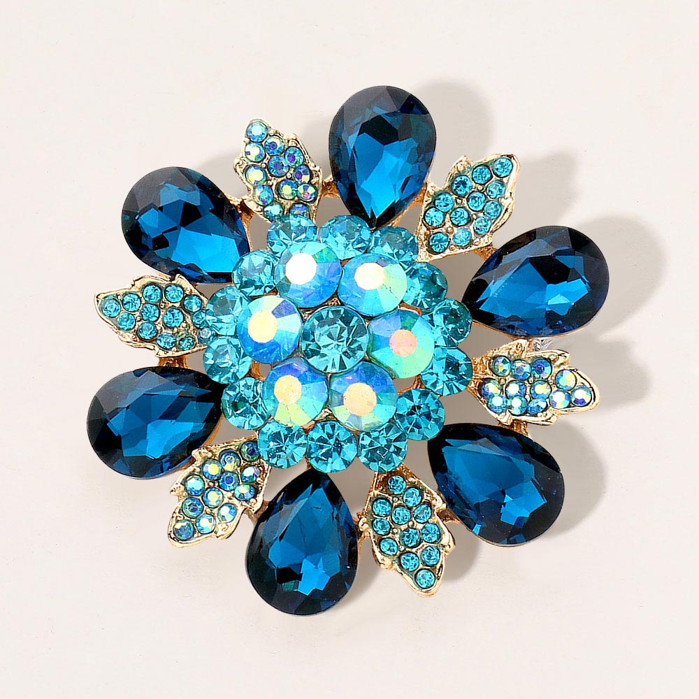 Glass Crystal Flower Stone Brooch / Pendant